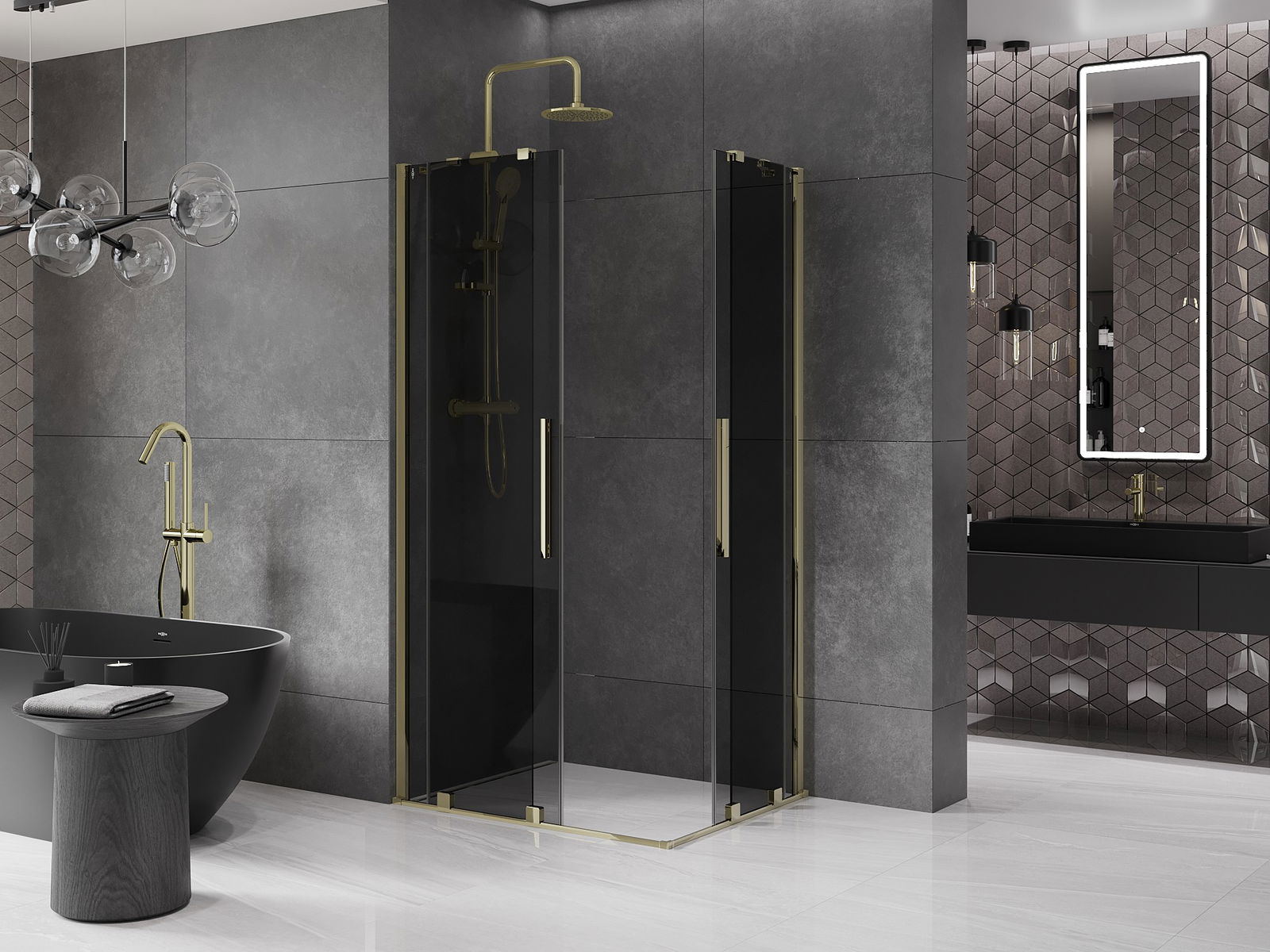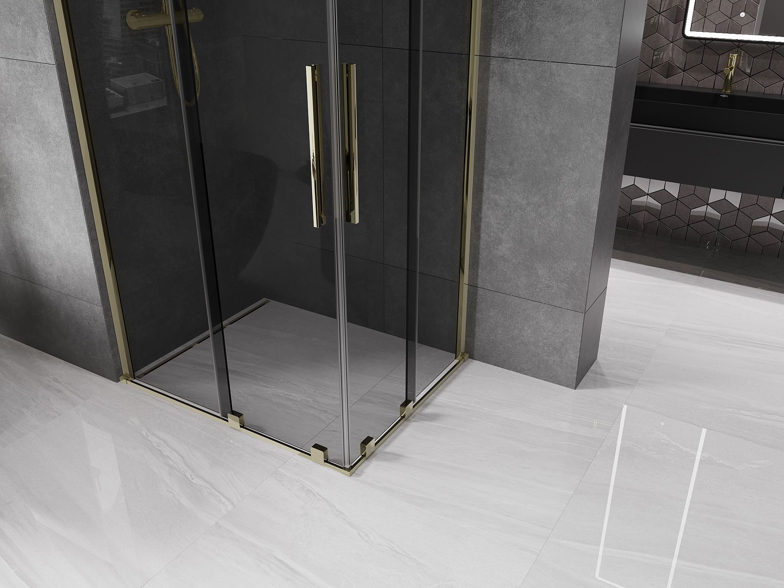 Mexen Velar Διπλή συρόμενη καμπίνα ντους 100 x 90 εκ., γραφίτης, χρυσό