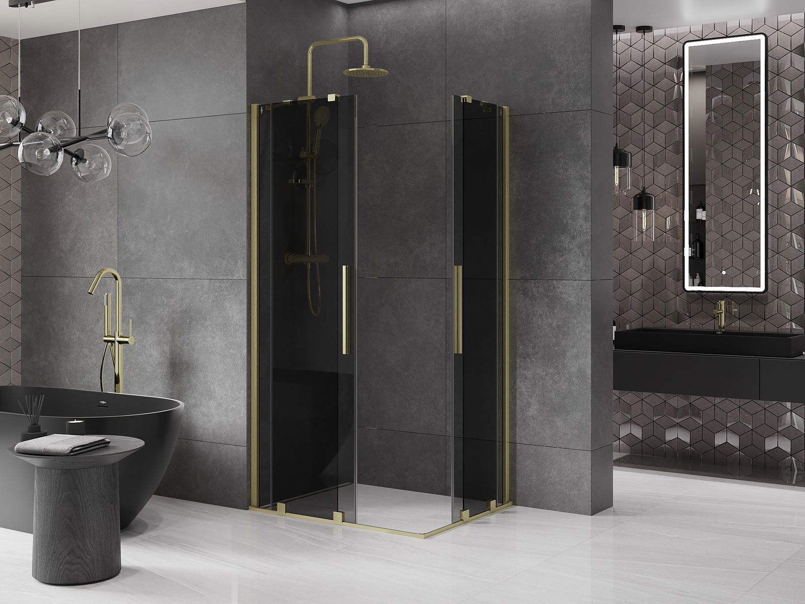 Mexen Velar Διπλό συρόμενη καμπίνα ντους 90 x 80 εκ., γραφίτης, χρυσό