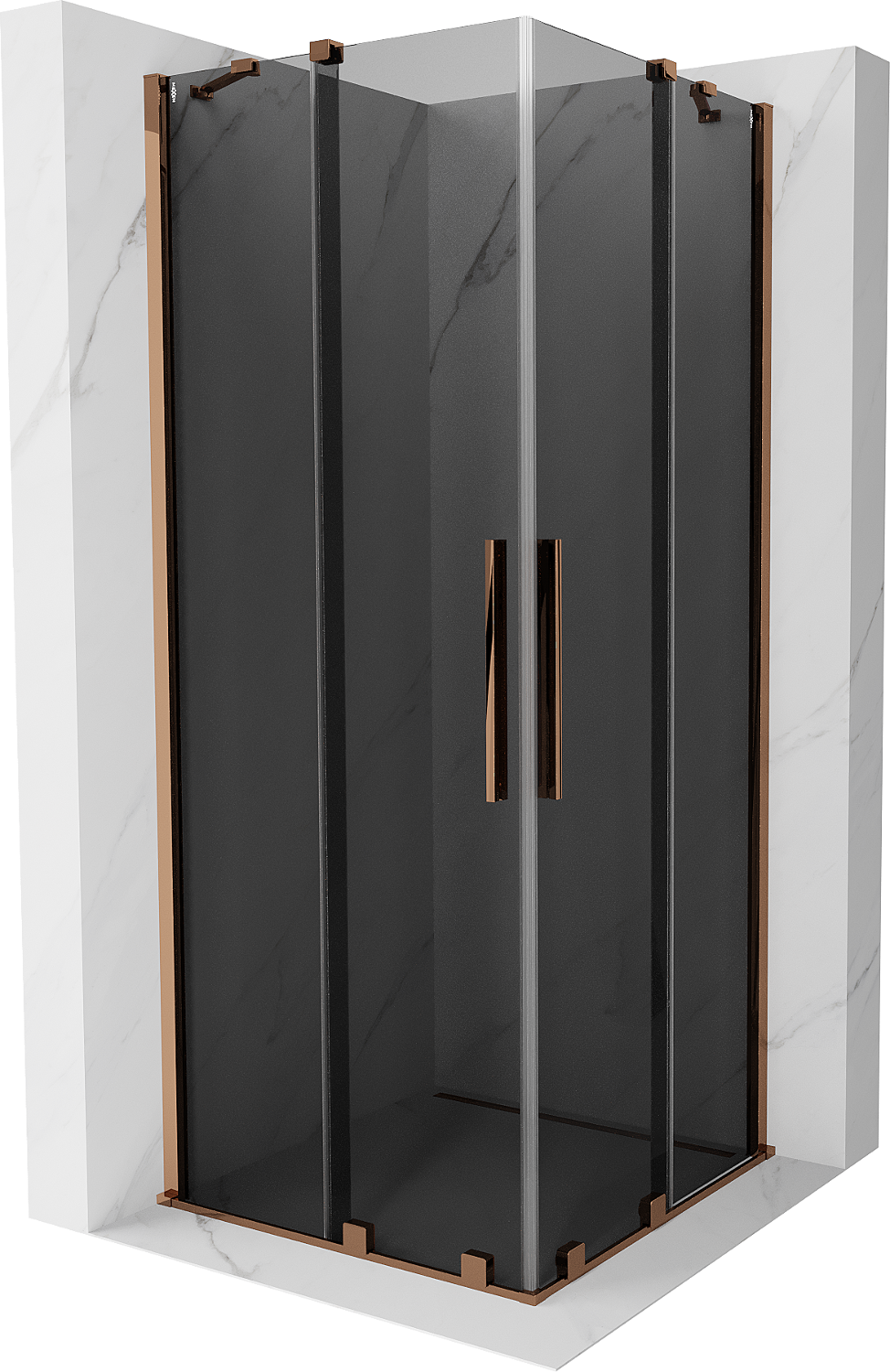 Mexen Velar Διπλή συρόμενη καμπίνα ντους 90 x 90 cm, γραφίτης, ροζ χρυσό