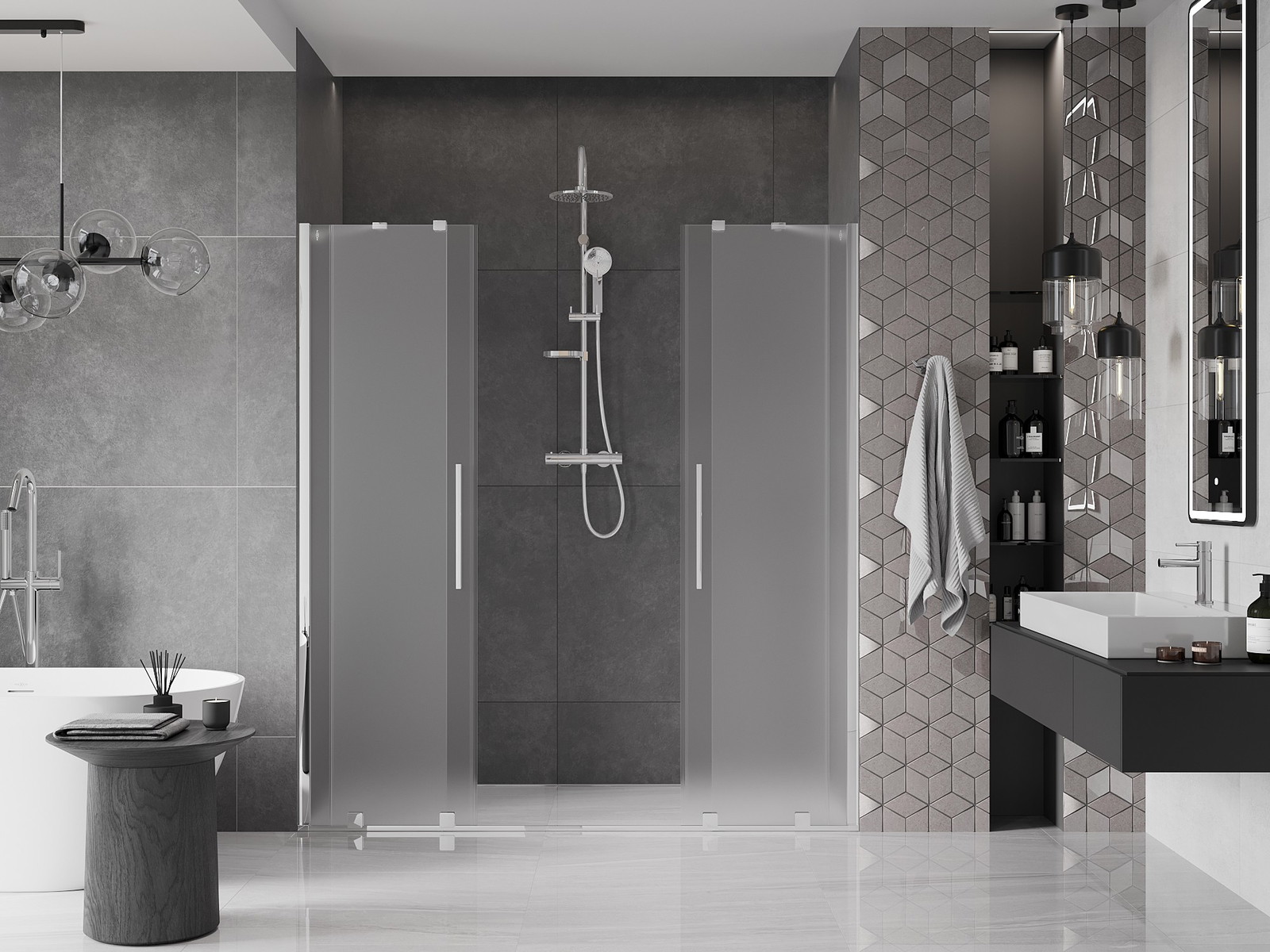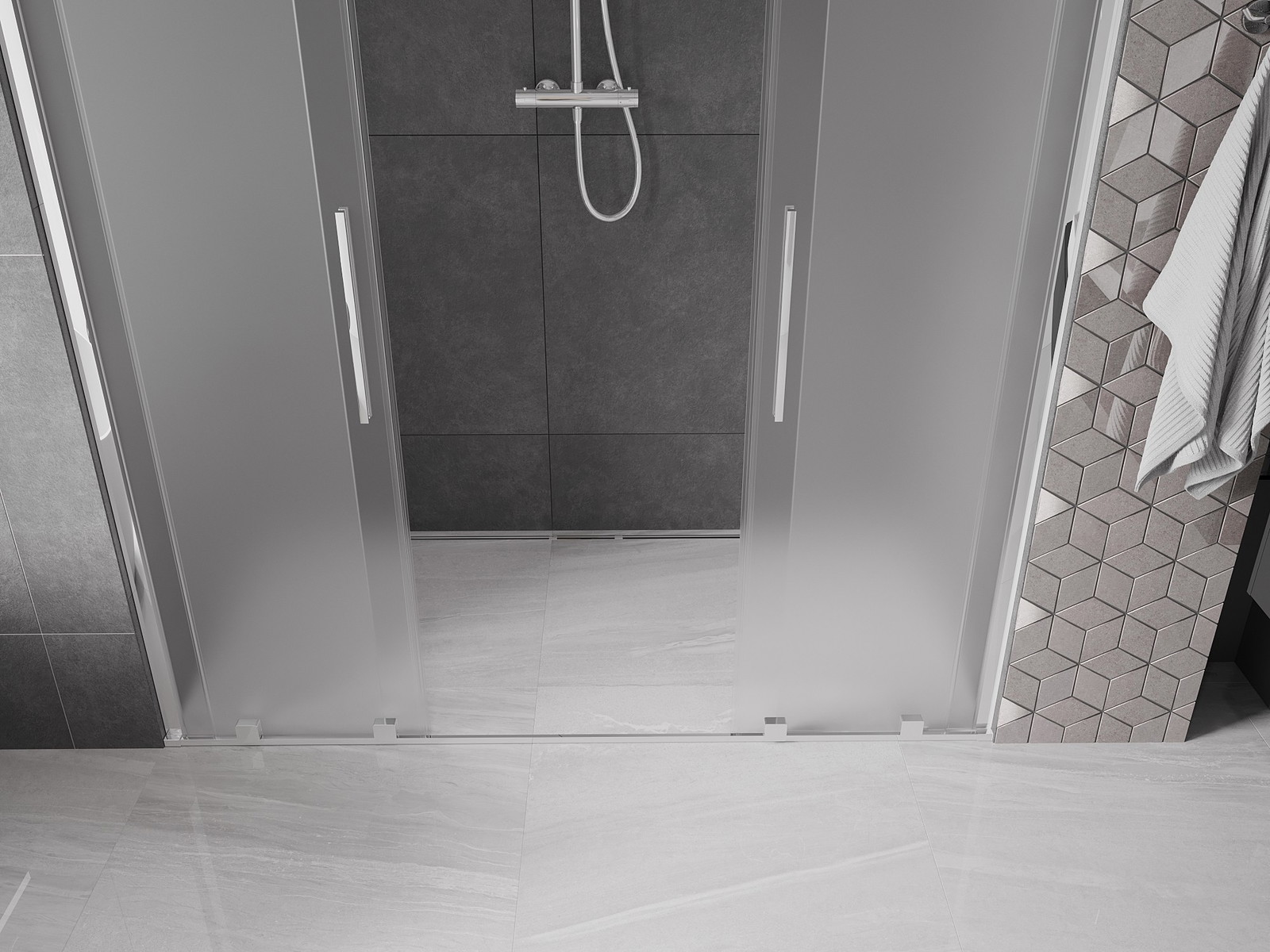 Mexen Velar Διπλή συρόμενη πόρτα ντους 200 εκ., αμμοβολής, χρώμιο - 871-200-000-32-01