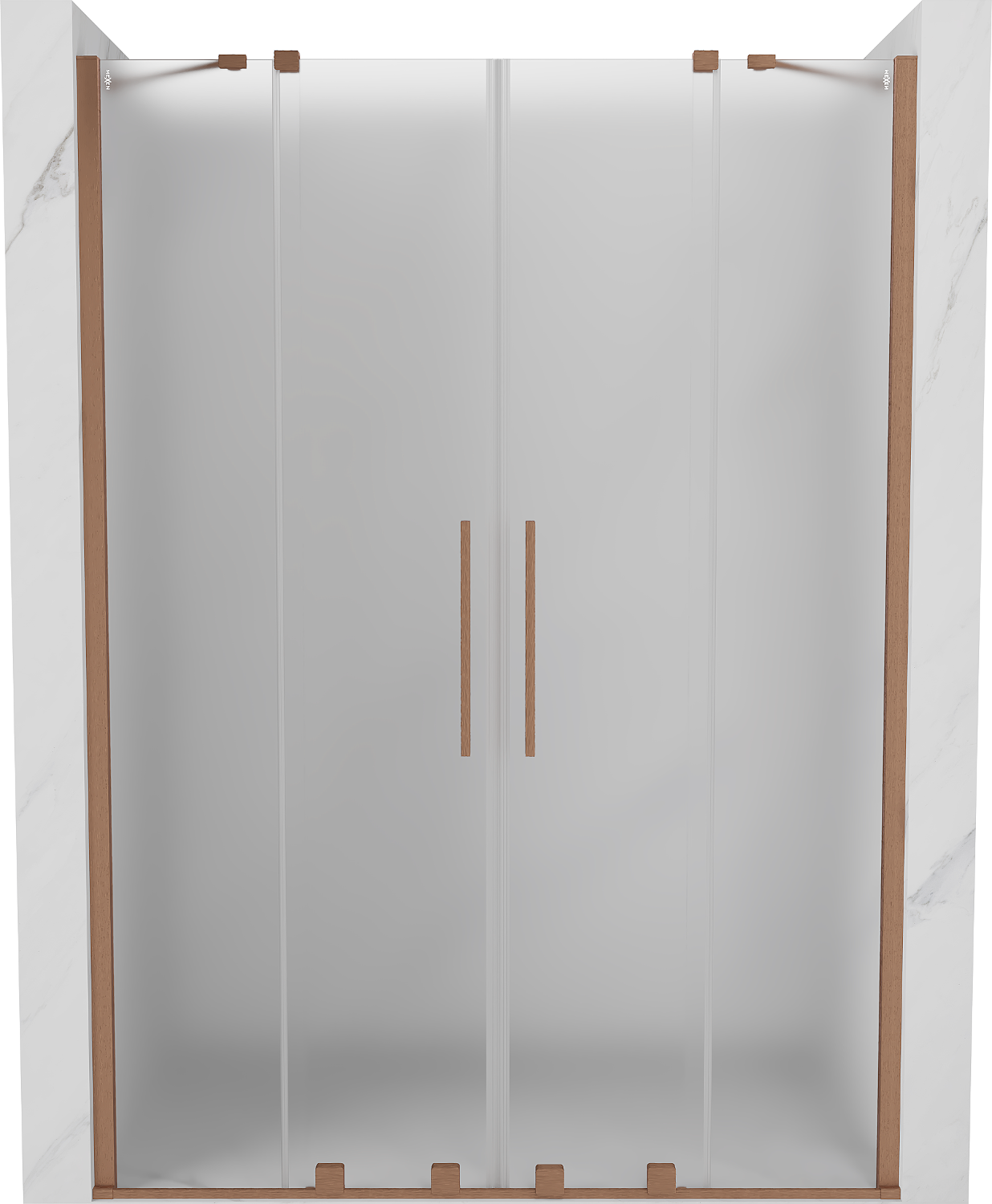 Mexen Velar Δίφυλλη συρόμενη πόρτα ντους 160 cm, σατινέ, βουρτσισμένος χαλκός