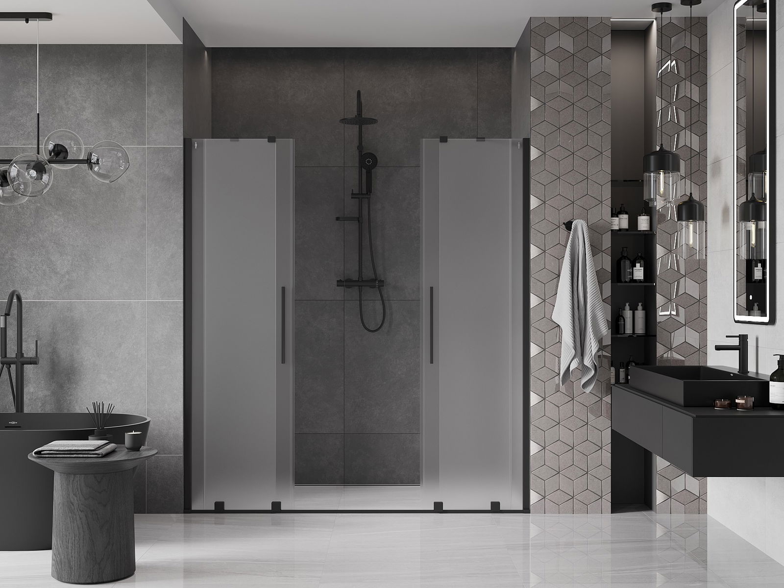 Mexen Velar Δίδυμες συρόμενες πόρτες ντους 180 cm, παγετώδης, μαύρες