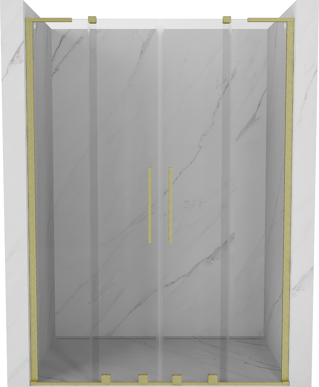 Mexen Velar L Duo συρόμενη πόρτα ντους 150 cm, διαφανής, χρυσό ματ - 871-150-003-02-55