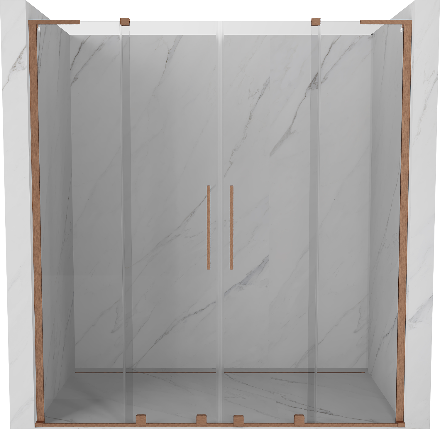 Mexen Velar L Duo συρόμενες πόρτες ντους 170 cm, διάφανες, βουρτσισμένος χαλκός