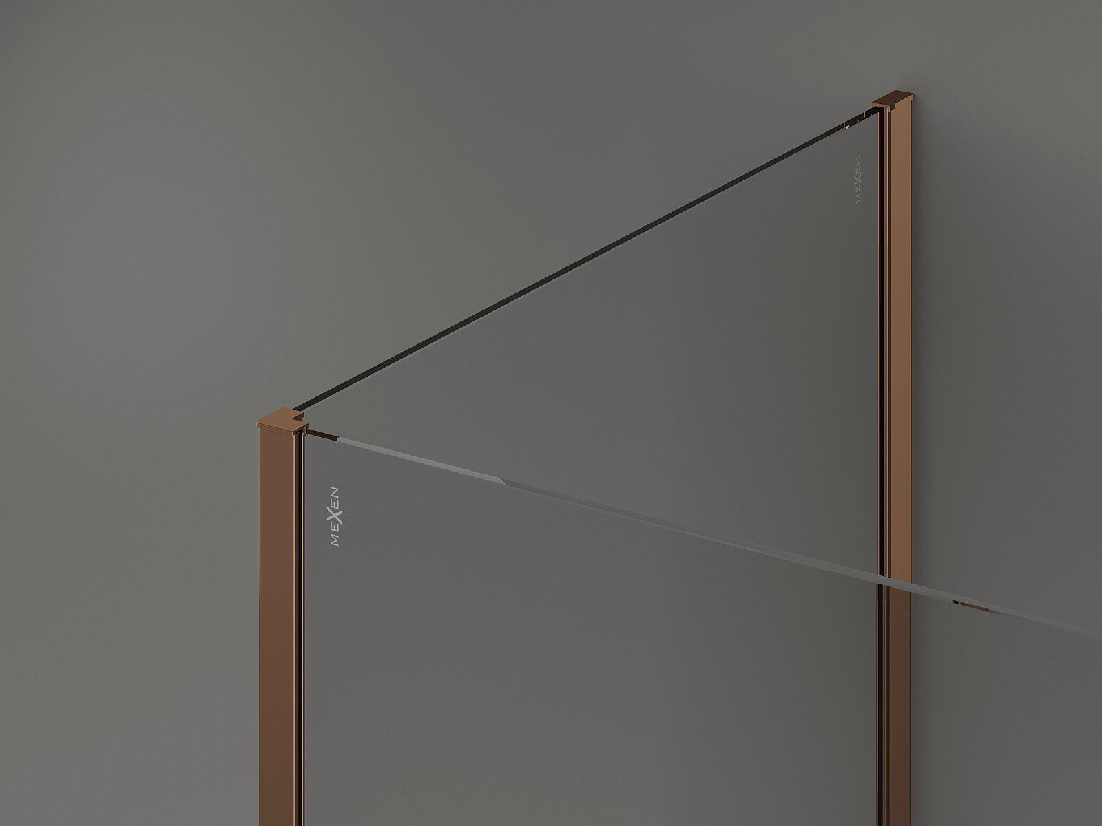 Mexen Kioto Πάνελ ντους Walk-in 110 x 90 x 30 cm, μαύρο πλαίσιο, ροζ χρυσό