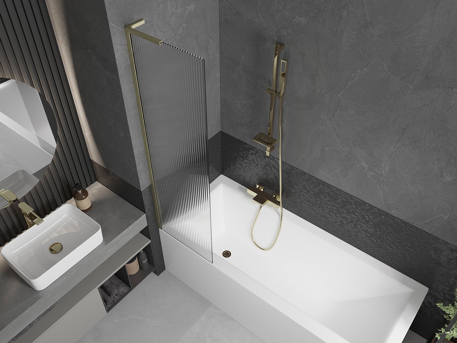 Mexen Next L παραβάν μπανιέρας 1-φυλλο 50 x 150 cm, ρίγες, χρυσό βουρτσισμένο