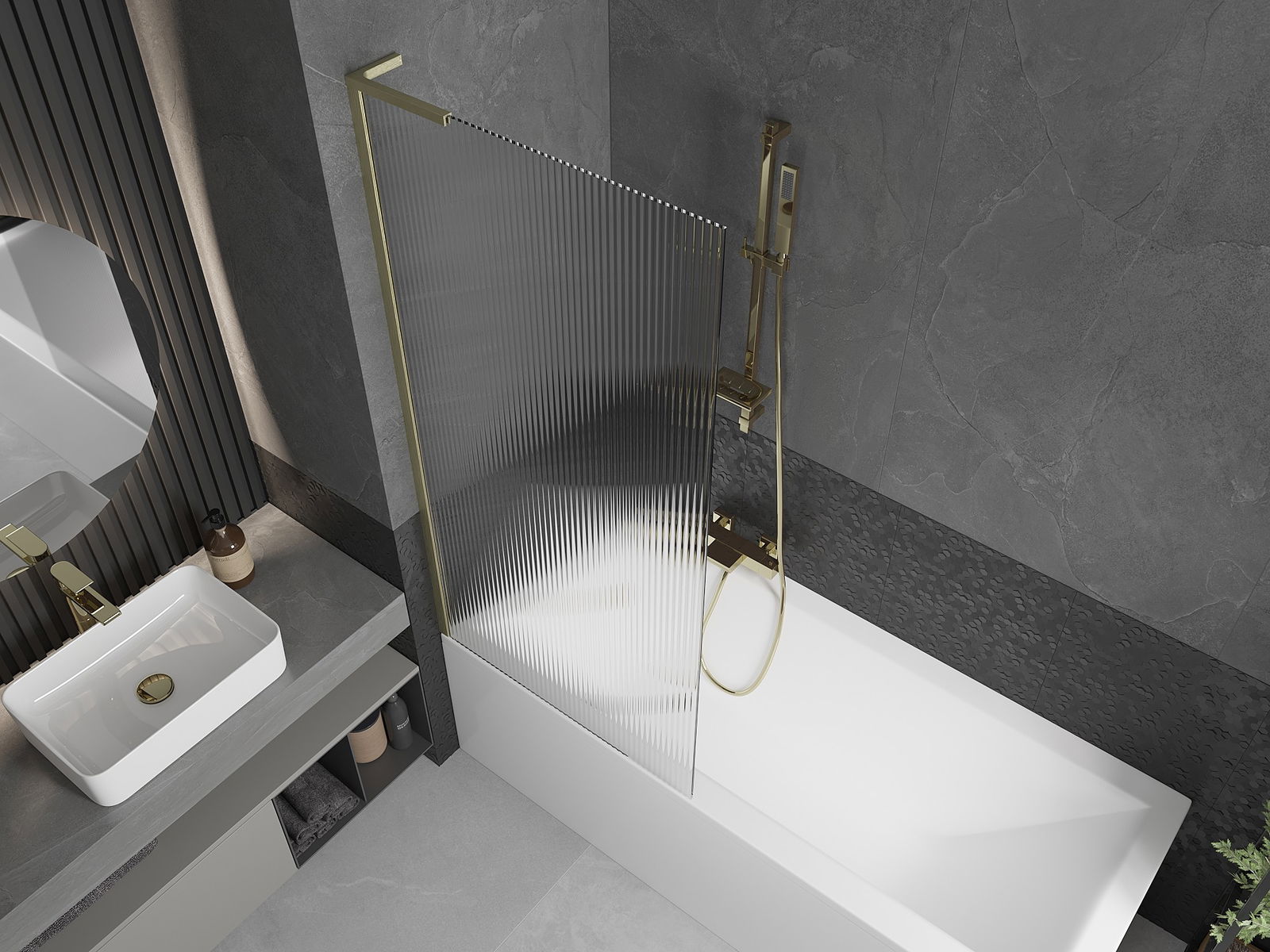 Mexen Next L Παρμπρίζ μπάνιου με 1 πτερύγιο 80 x 150 cm, ρίγες, χρυσό