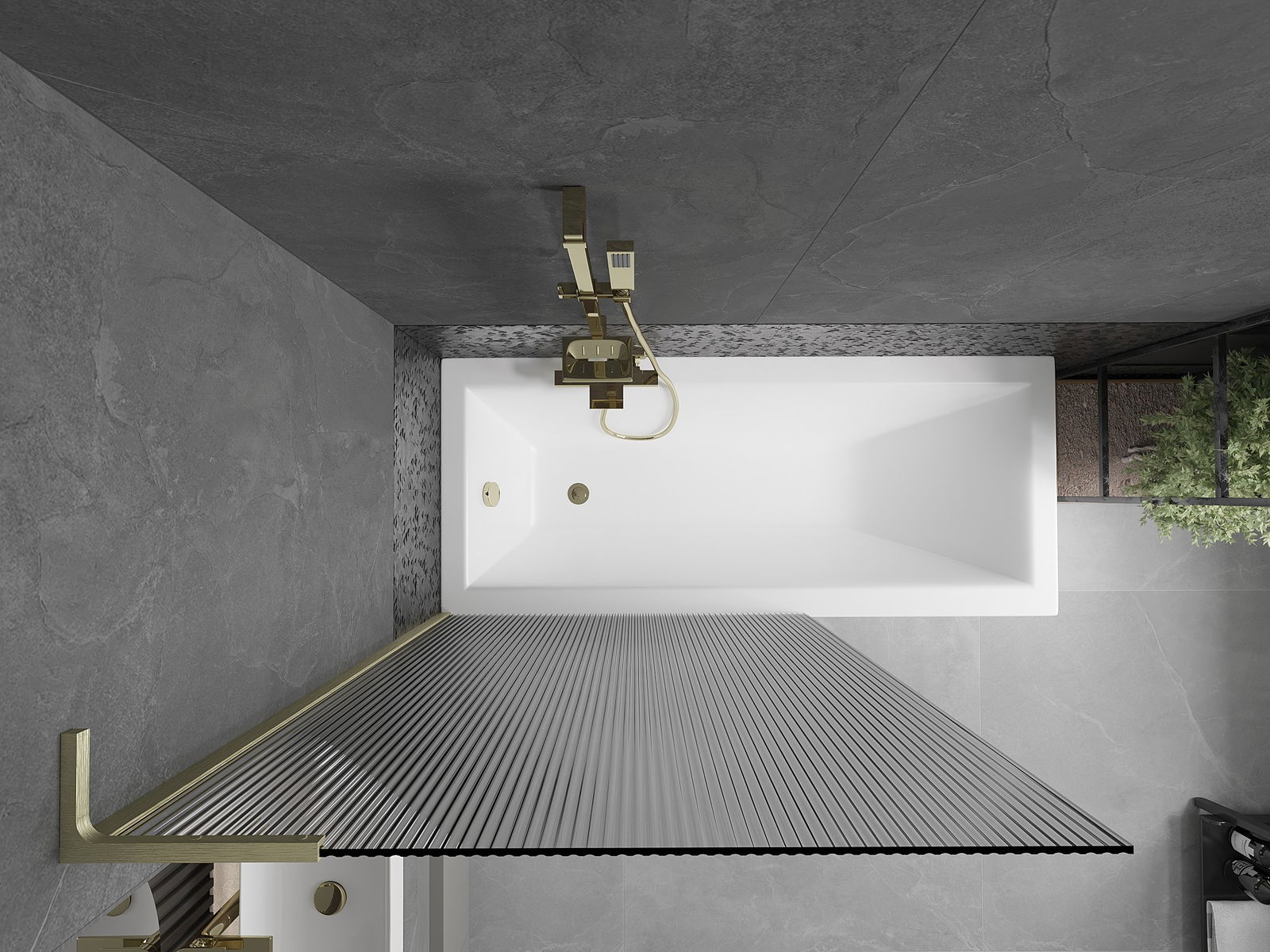 Mexen Next L παραβάν μπανιέρας μονόφυλλο 100 x 150 cm, ρίγες, χρυσό ματ