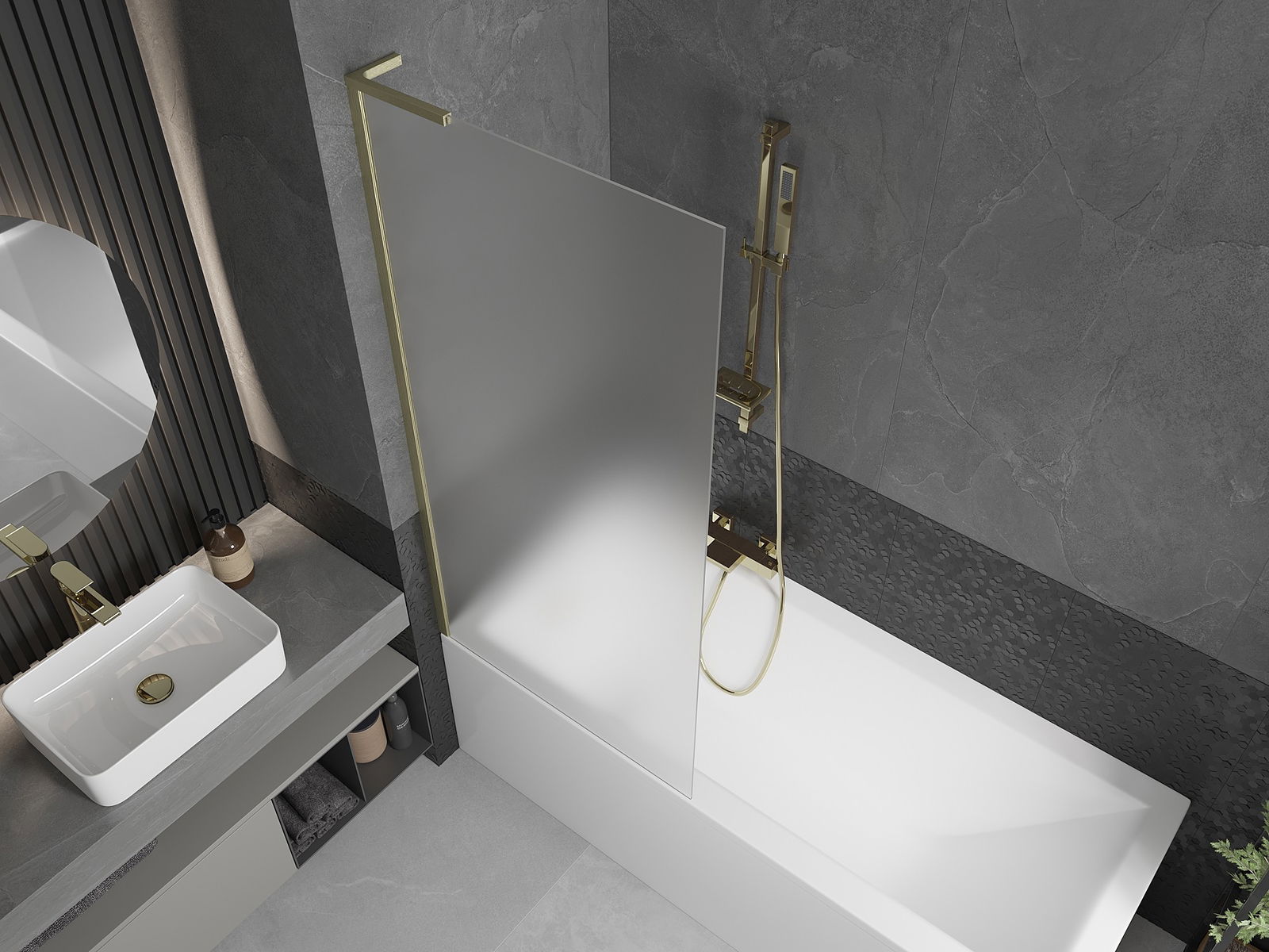 Mexen Next L παραβάν μπανιέρας 1 θύρας 80 x 150 cm, παγετός, χρυσό βουρτσισμένο