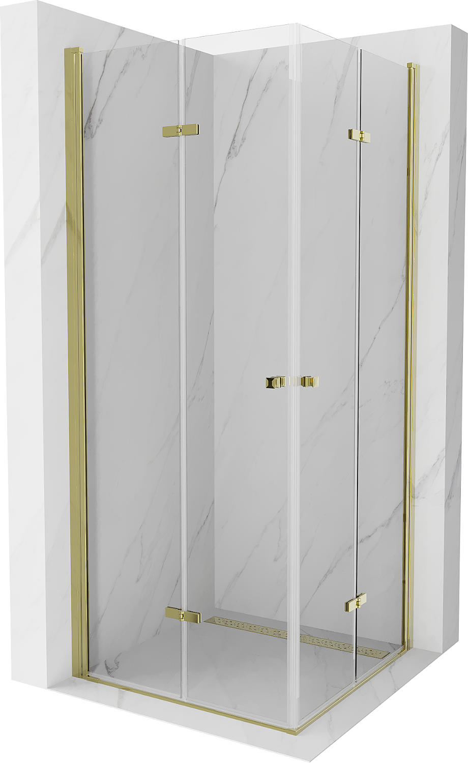 Mexen Lima Διπλή πτυσσόμενη καμπίνα ντους 70 x 70 cm, διαφανής, χρυσή