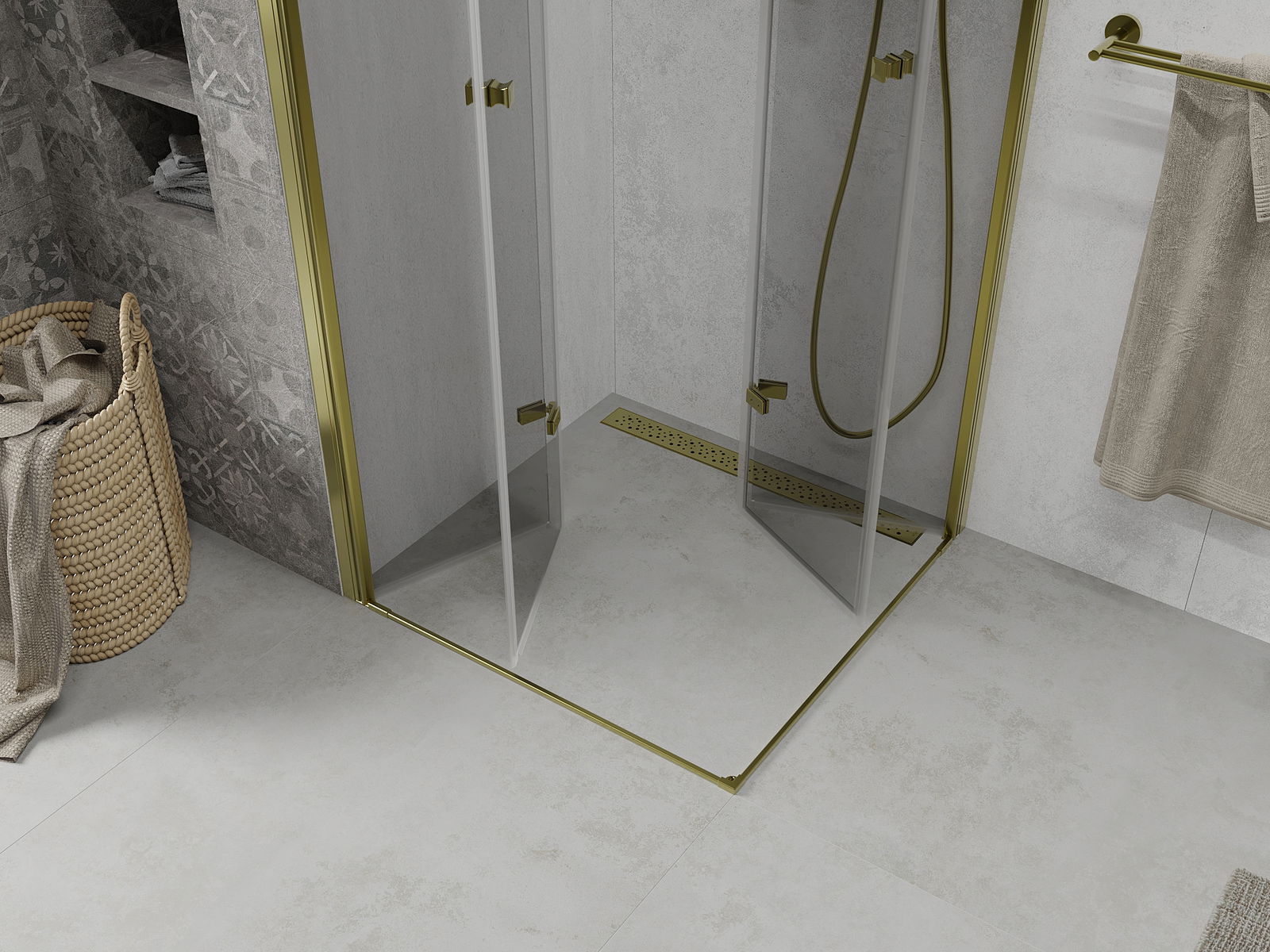 Mexen Lima Δίφυλλη καμπίνα ντους διπλής αναδίπλωσης 90 x 90 cm, διαφανής, χρυσή
