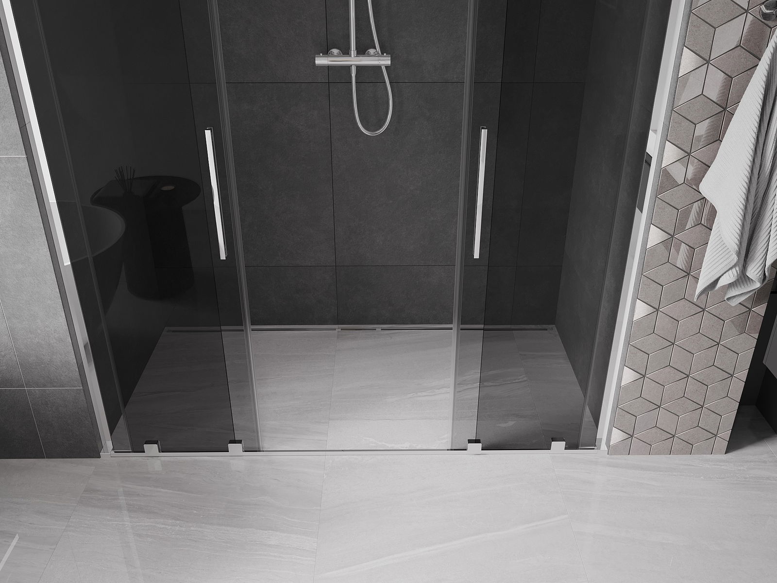 Mexen Velar L Duo συρόμενη πόρτα ντους 180 cm, γραφίτης, χρώμιο - 871-180-003-42-01