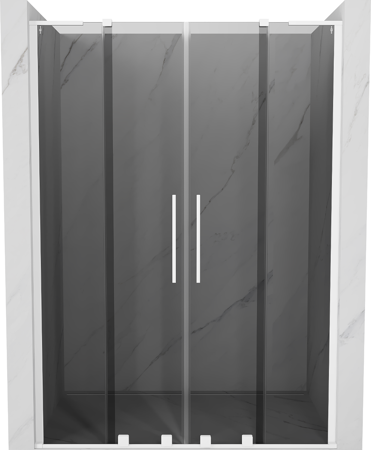 Mexen Velar L Duo συρόμενη πόρτα ντους 140 cm, γραφίτης, λευκή - 871-140-003-42-20
