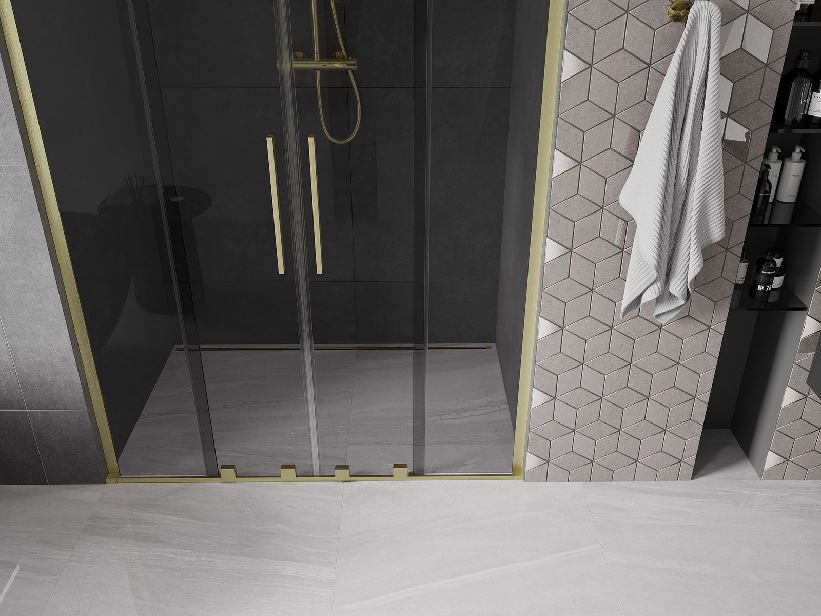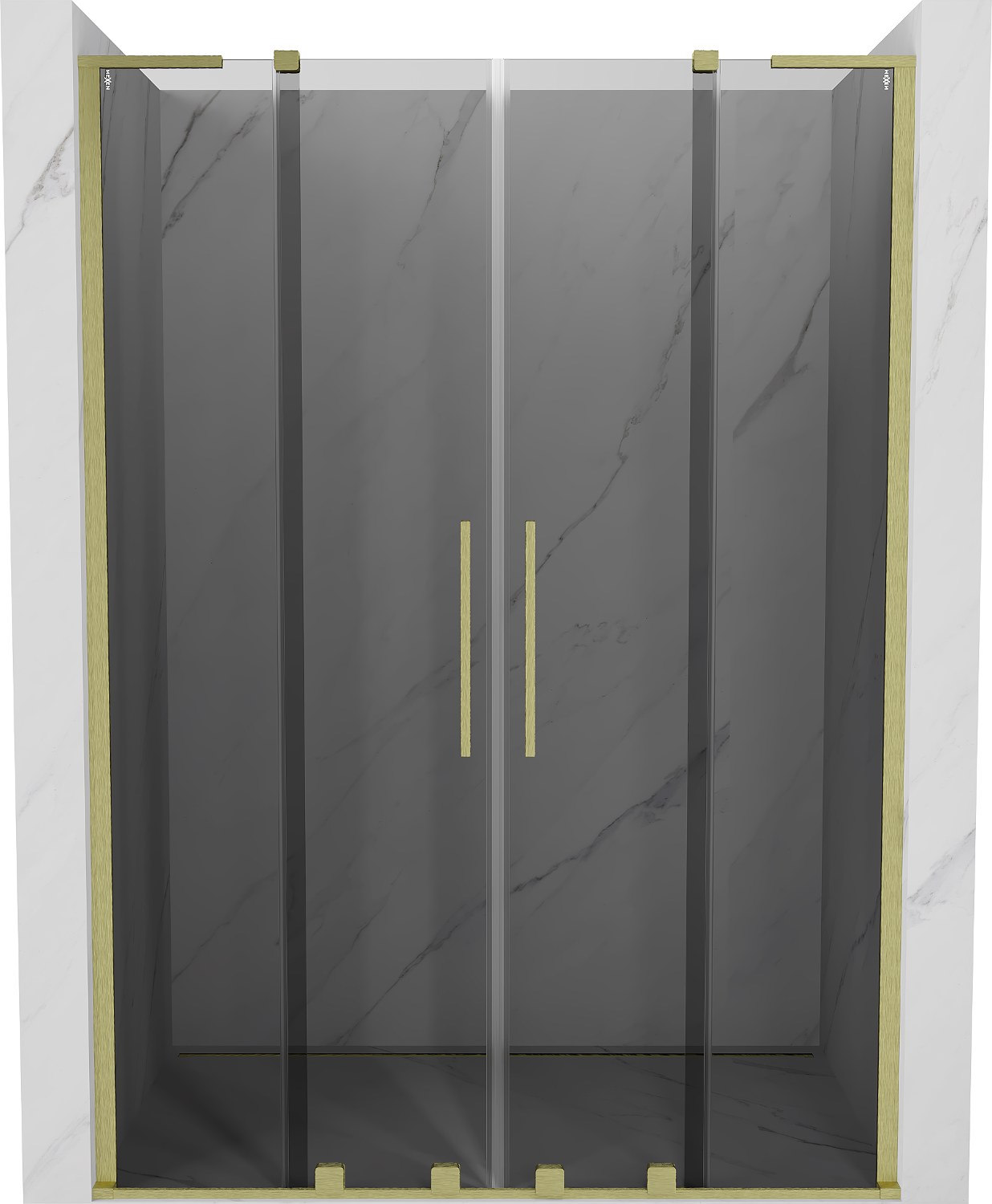 Mexen Velar L Duo συρόμενες πόρτες ντους 140 cm, γραφίτης, χρυσό βουρτσισμένο
