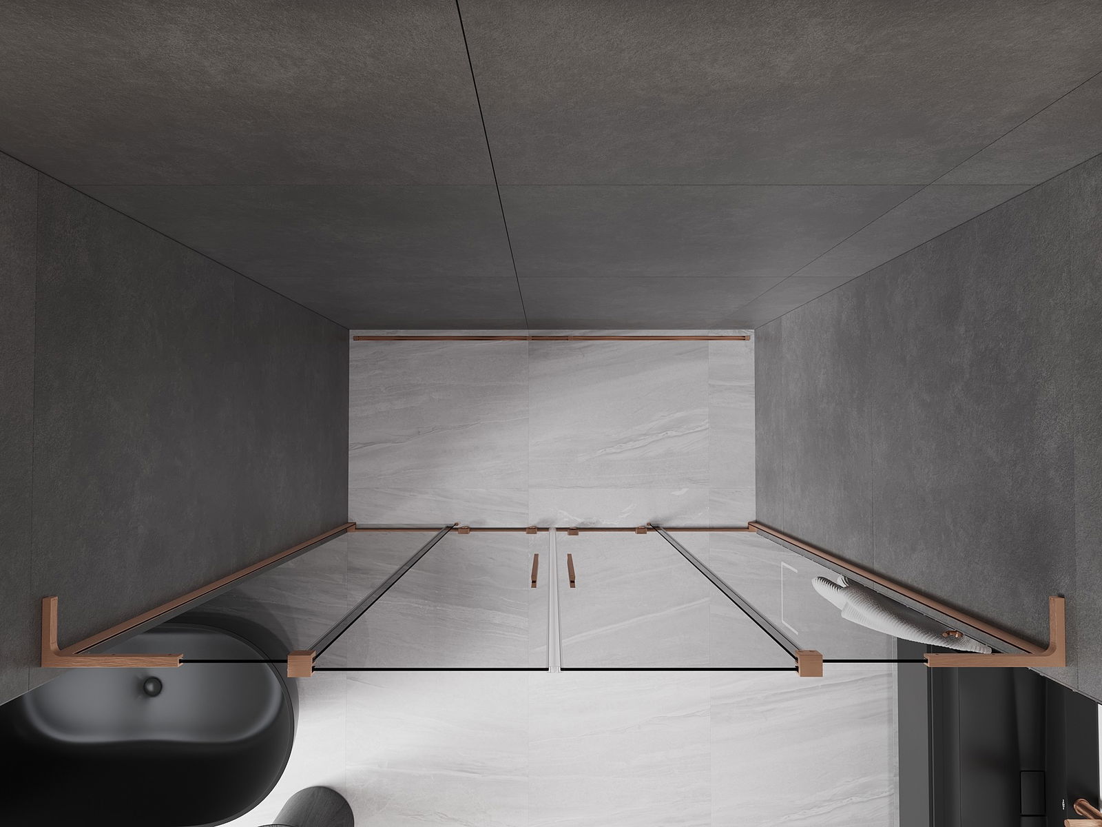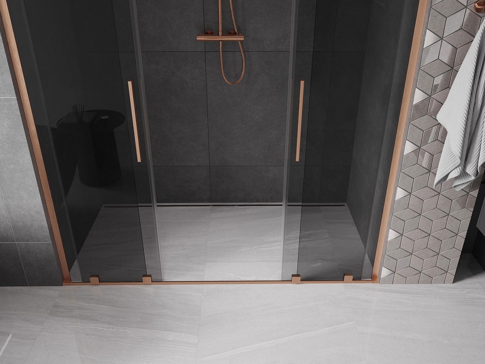Mexen Velar L Duo συρόμενη πόρτα ντους 180 cm, γραφίτης, βουρτσισμένος χαλκός