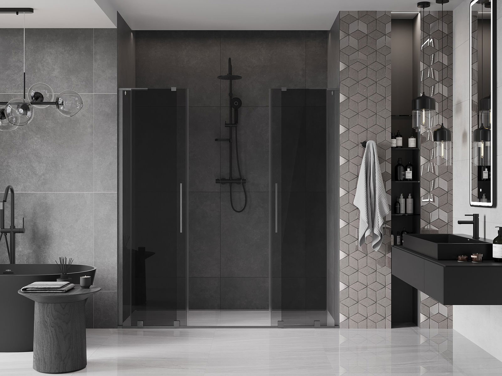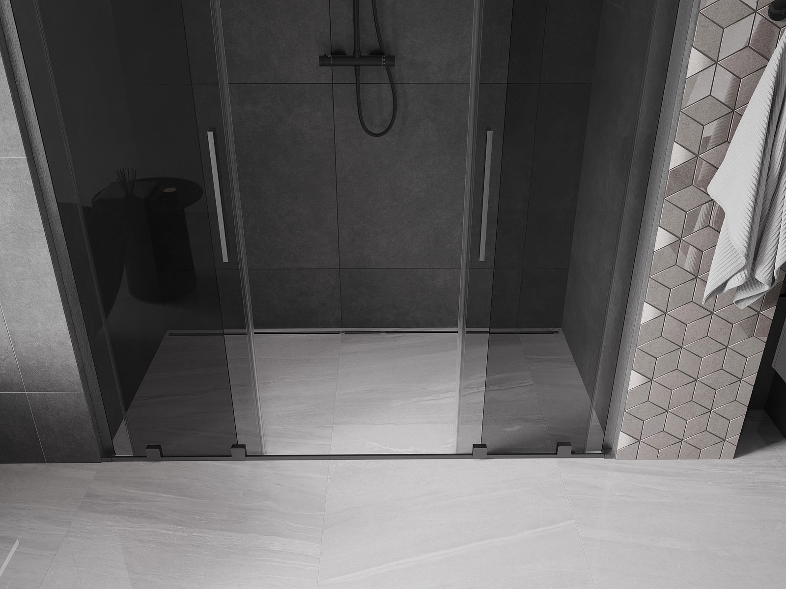 Mexen Velar L Duo συρόμενες πόρτες ντους 180 cm, γραφίτης, γυαλισμένο ασημί