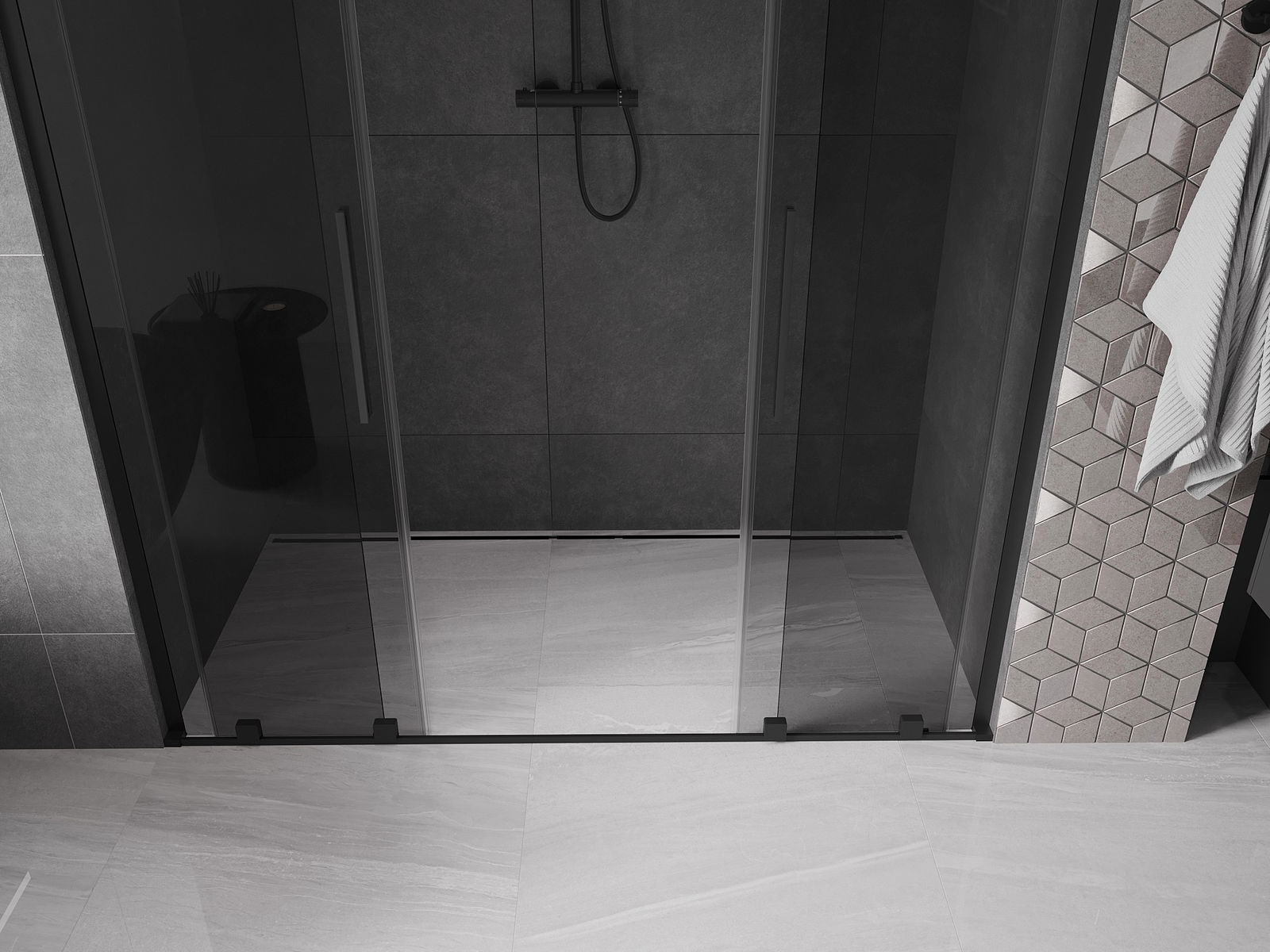 Mexen Velar L Duo συρόμενη πόρτα ντους 200 cm, γραφίτης, μαύρη - 871-200-003-42-70