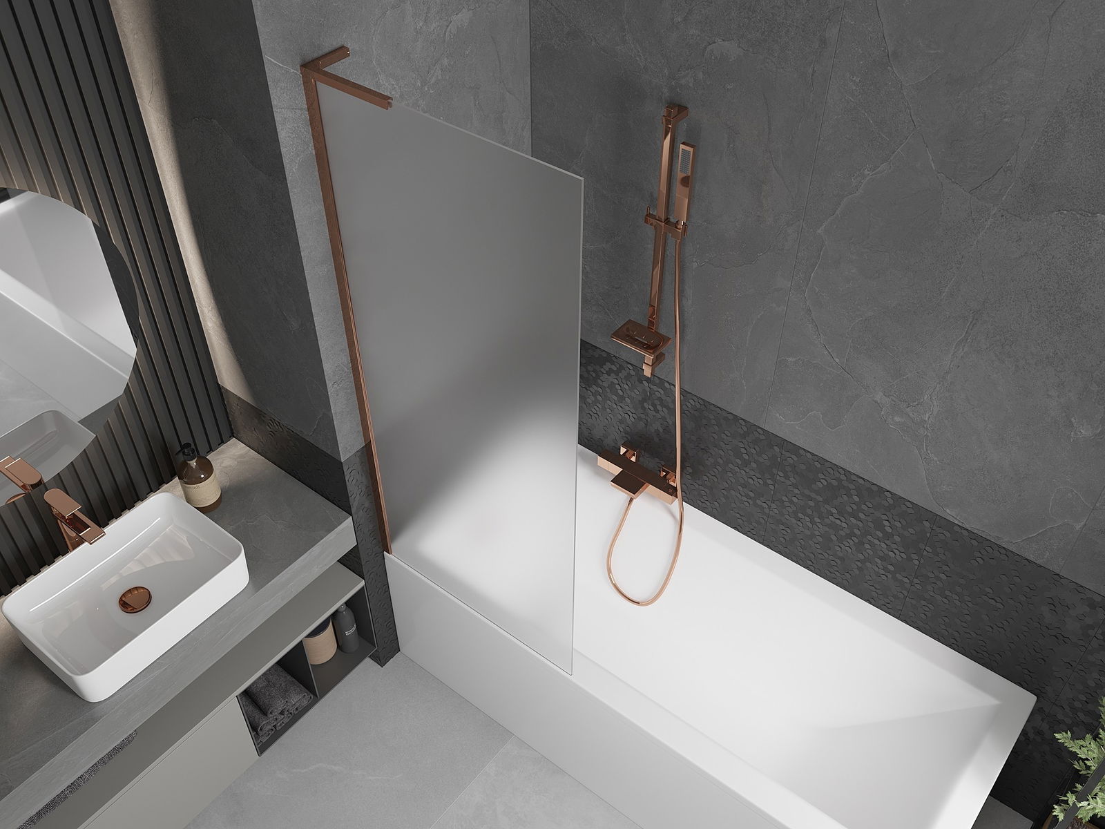Mexen Next L παραβάν μπάνιου 1-φυλλάδιο 70 x 150 cm, παγετός, ροζ χρυσό