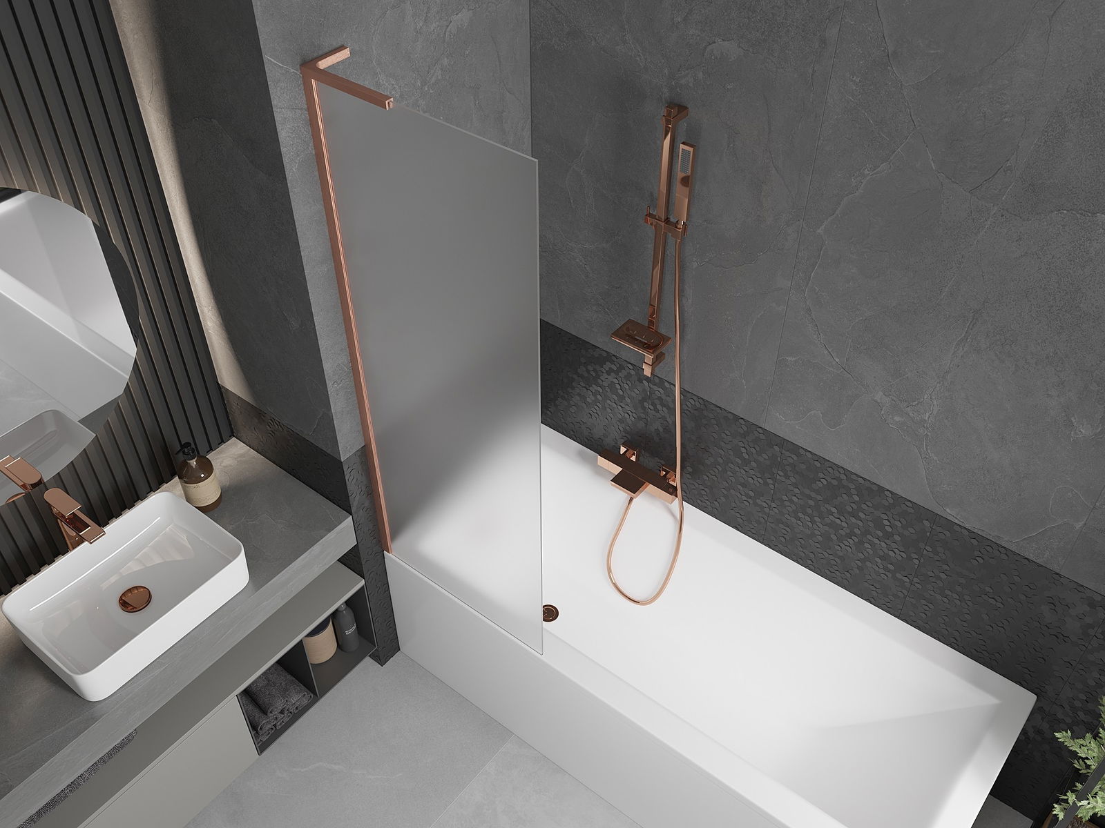 Mexen Next L παραβάν μπάνιου 1-φυλλο 60 x 150 cm, παγωμένο, βουρτσισμένος χαλκός