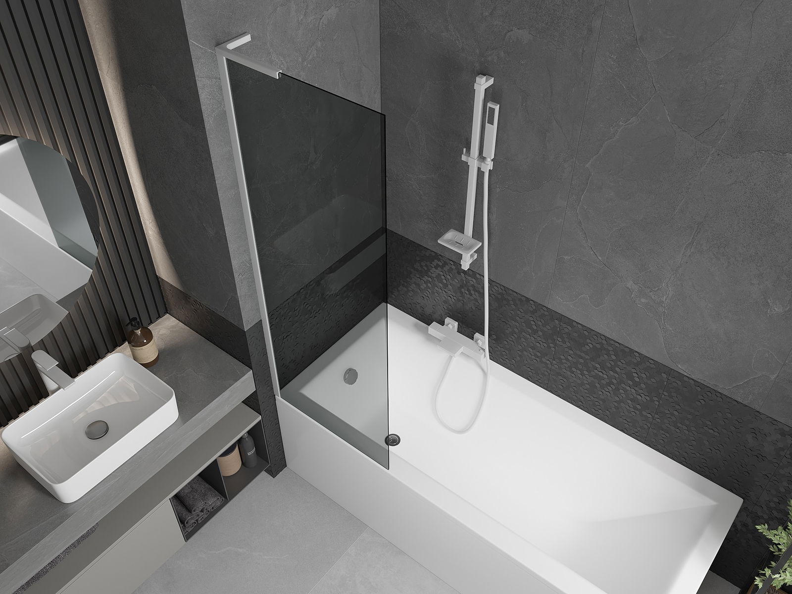 Mexen Next L παραβάν μπάνιου 1-φυλλο 60 x 150 cm, γκρι γραφίτη, λευκό - 895-060-000-03-40-20