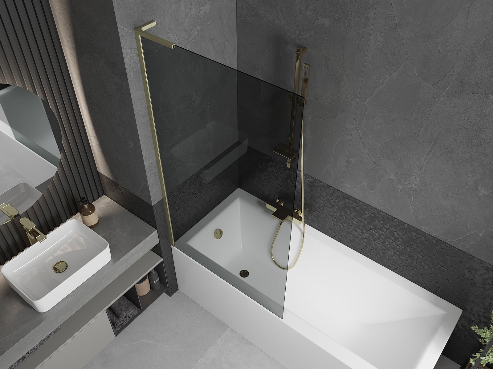 Mexen Next L παραβάν μπάνιου 1 φύλλου 90 x 150 cm, γραφίτης, χρυσό βουρτσισμένο