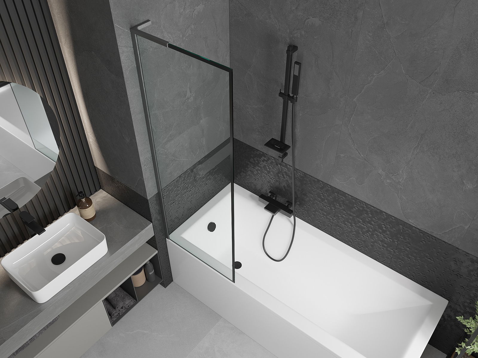 Mexen Next L Μπάνιο οθόνης 1-πτέρυγας 60 x 150 cm, μαύρο πλαίσιο, gun gray