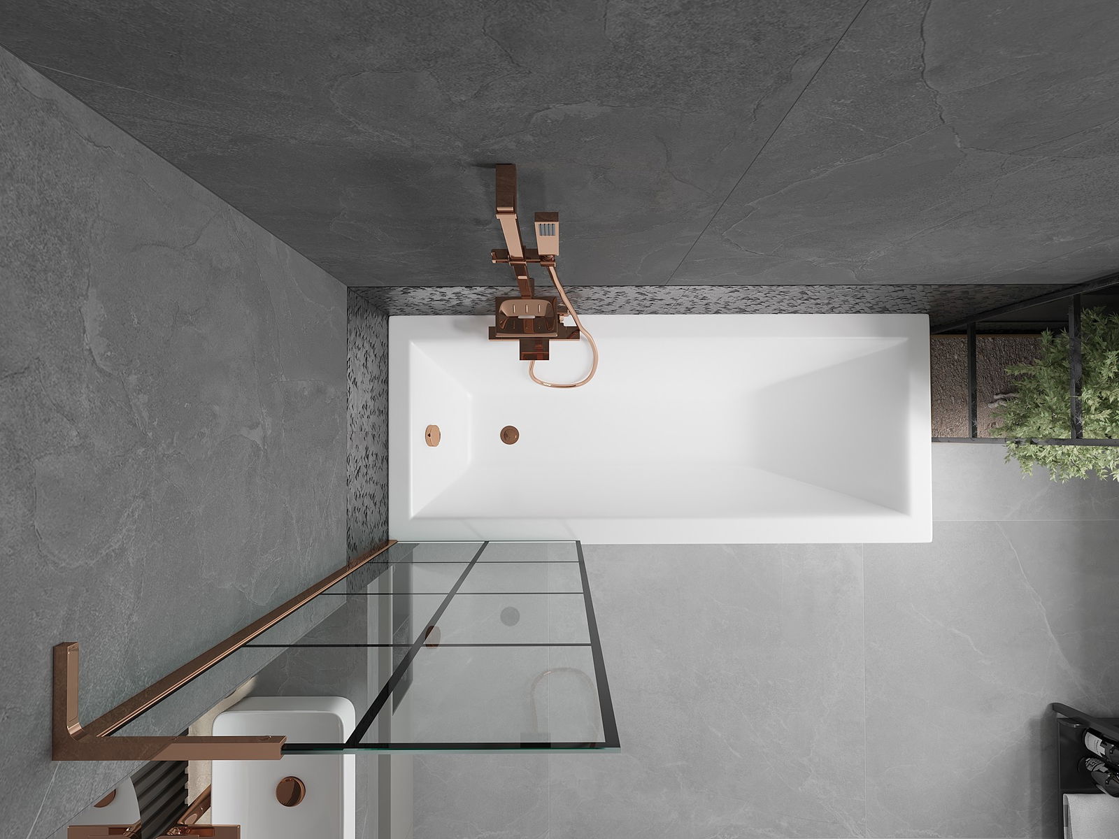 Mexen Next L παραβάν μπάνιου μονού φύλλου 60 x 150 cm, μαύρο καρό, ροζ χρυσό