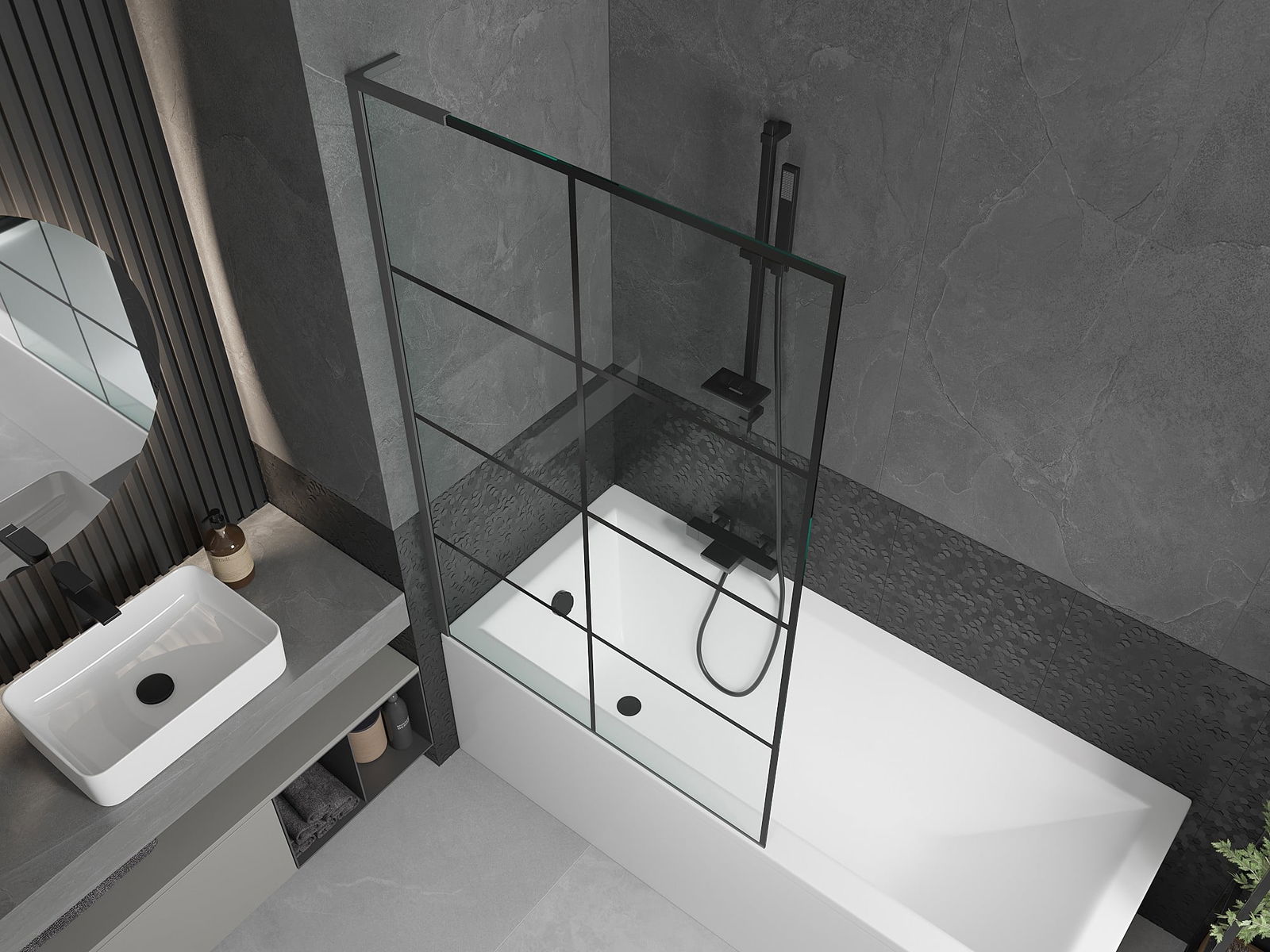 Mexen Next L Παραβάν μπανιέρας μονόφυλλο 100 x 150 εκ., μαύρο καρό, γκρι μέταλλο