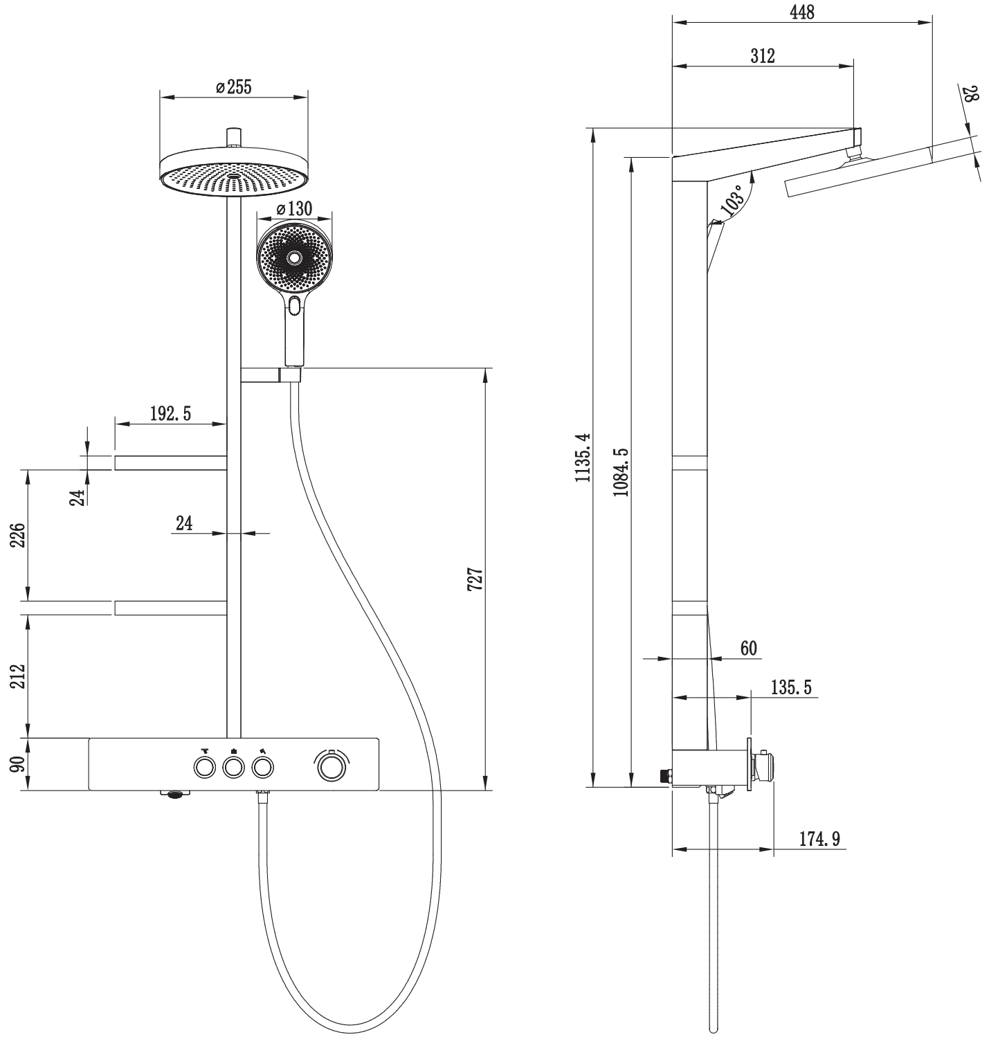 Μέγεθος κεφαλής ντους: ø255 mm