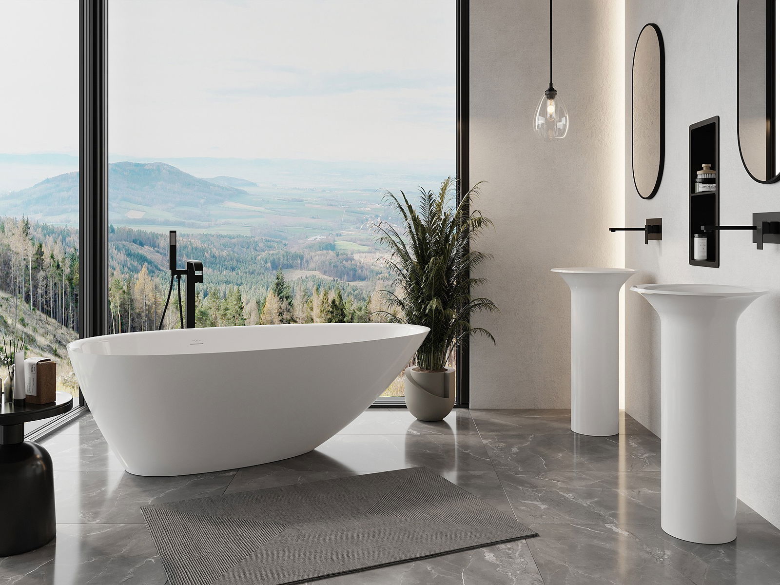 Mexen Milano ελεύθερη μπανιέρα από συγκολλητή πέτρα 170 x 86 cm, λευκή