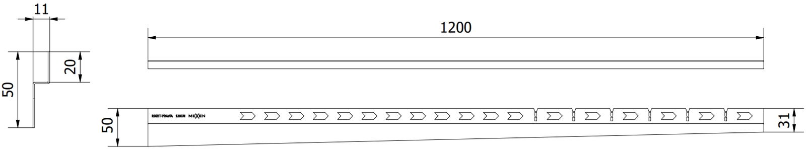 Mexen Line-B λίστα υποβάθμισης τοίχου 120 cm δεξιά, inox - 181002120R