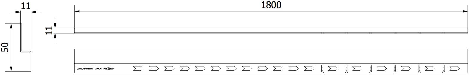 Mexen Line-B μπροστινή λωρίδα ντους 180 cm, χρυσή - 185003180U