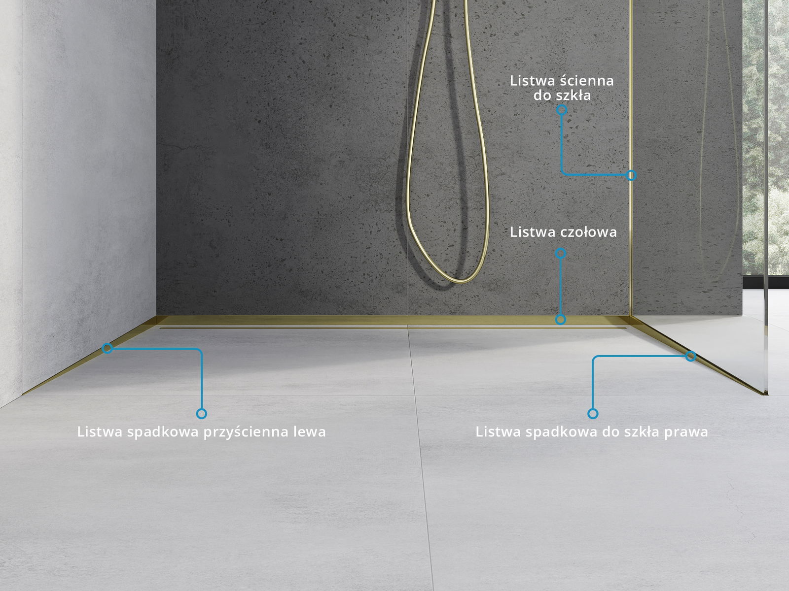 Η μπροστινή λωρίδα είναι συμπλήρωμα κατά τη χρήση κλίσης λωρίδων, δημιουργώντας μια συνεκτική μονάδα στον χώρο του ντους