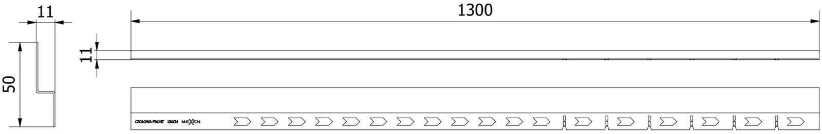 Mexen Line-B πρόσοψη ντουζιέρας 130 cm, μαύρη - 187003130U
