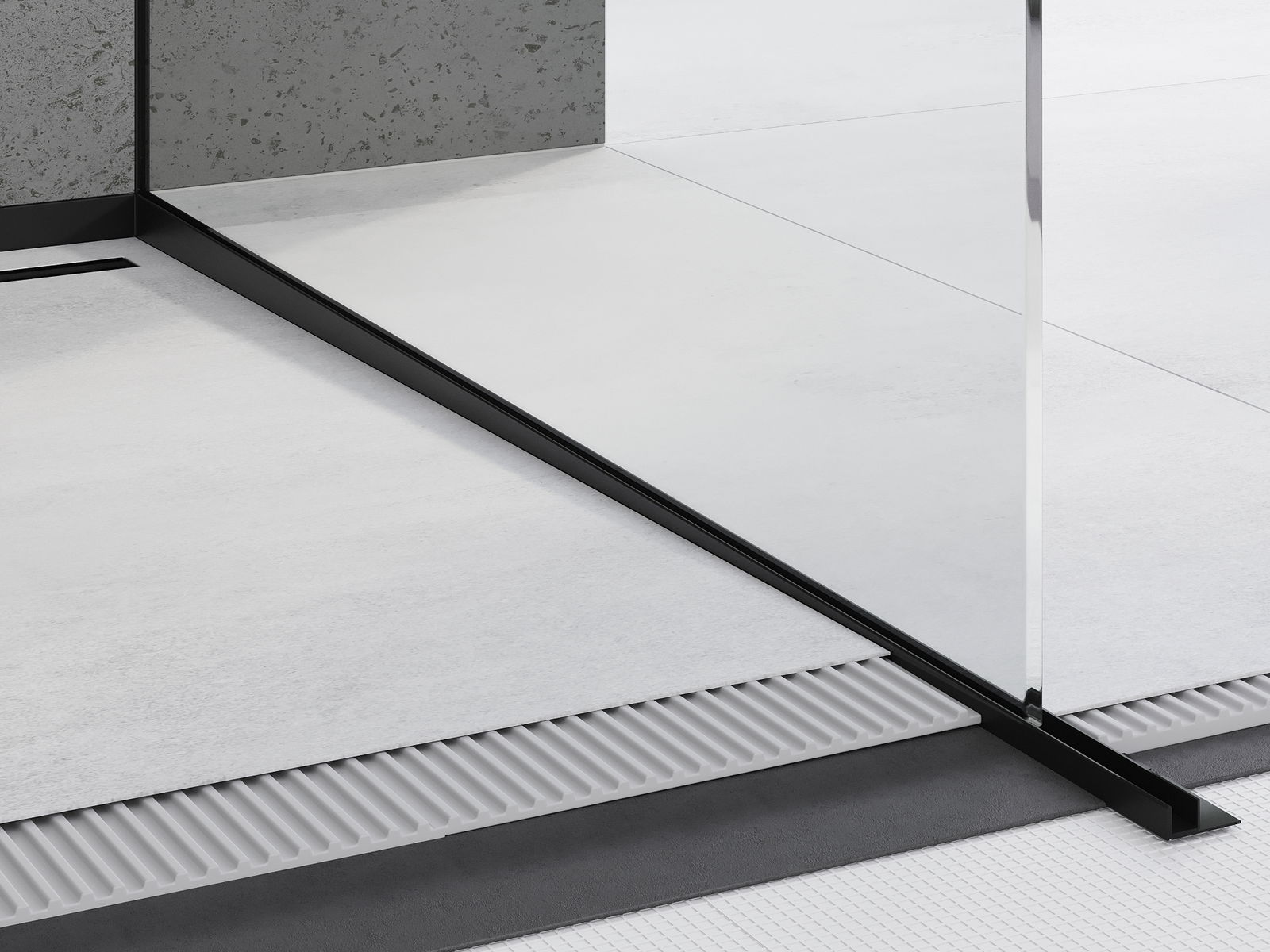 Η λωρίδα κλίσης διαθέτει ακριβώς ρυθμισμένη γωνία κλίσης, η οποία κατευθύνει αποτελεσματικά το νερό προς την αποχέτευση, αποτρέποντας τη συσσώρευσή του στην επιφάνεια του δαπέδου. Έτσι, το νερό αποστραγγίζεται αποτελεσματικά, ελαχιστοποιώντας τον κίνδυνο σχηματισμού λούμπας και εξασφαλίζοντας στεγνή και ασφαλή επιφάνεια.