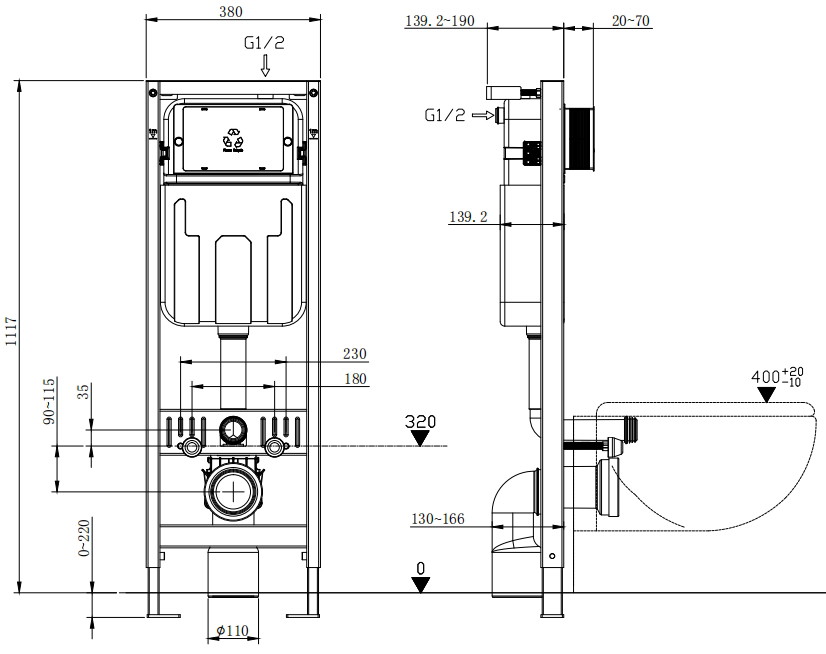 Η δυνατότητα ρύθμισης του ύψους του σκελετού επιτρέπει την καλύτερη προσαρμογή σε διάφορες τεχνικές συνθήκες στο μπάνιο. Η ευέλικτη γκάμα ρυθμίσεων εξασφαλίζει άνετη εγκατάσταση και την επίτευξη της βέλτιστης καμίας ύψους.