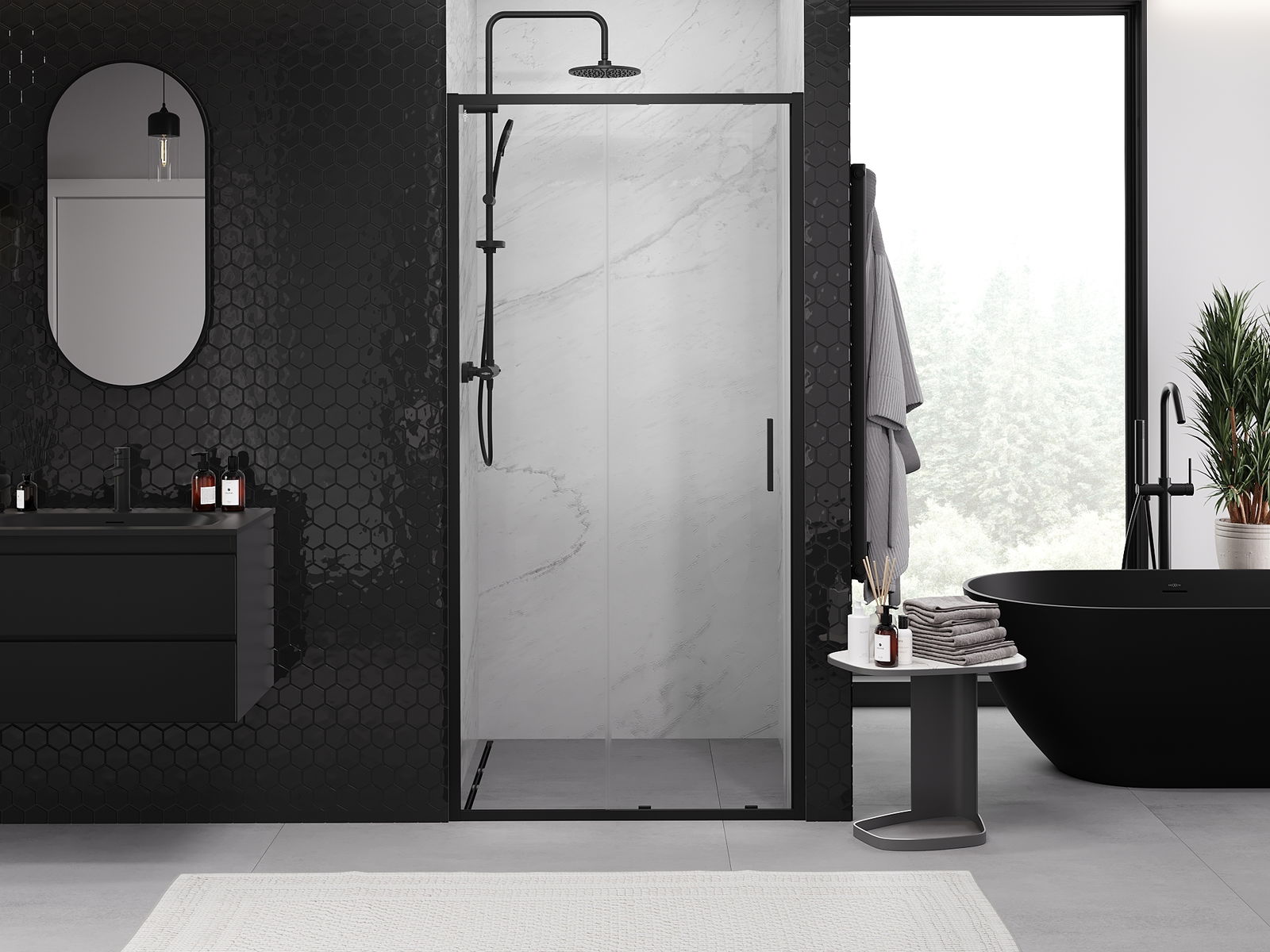 Mexen Exo συρόμενη πόρτα ντους 90 cm, διάφανη, μαύρη - 8151-090-000-70-00