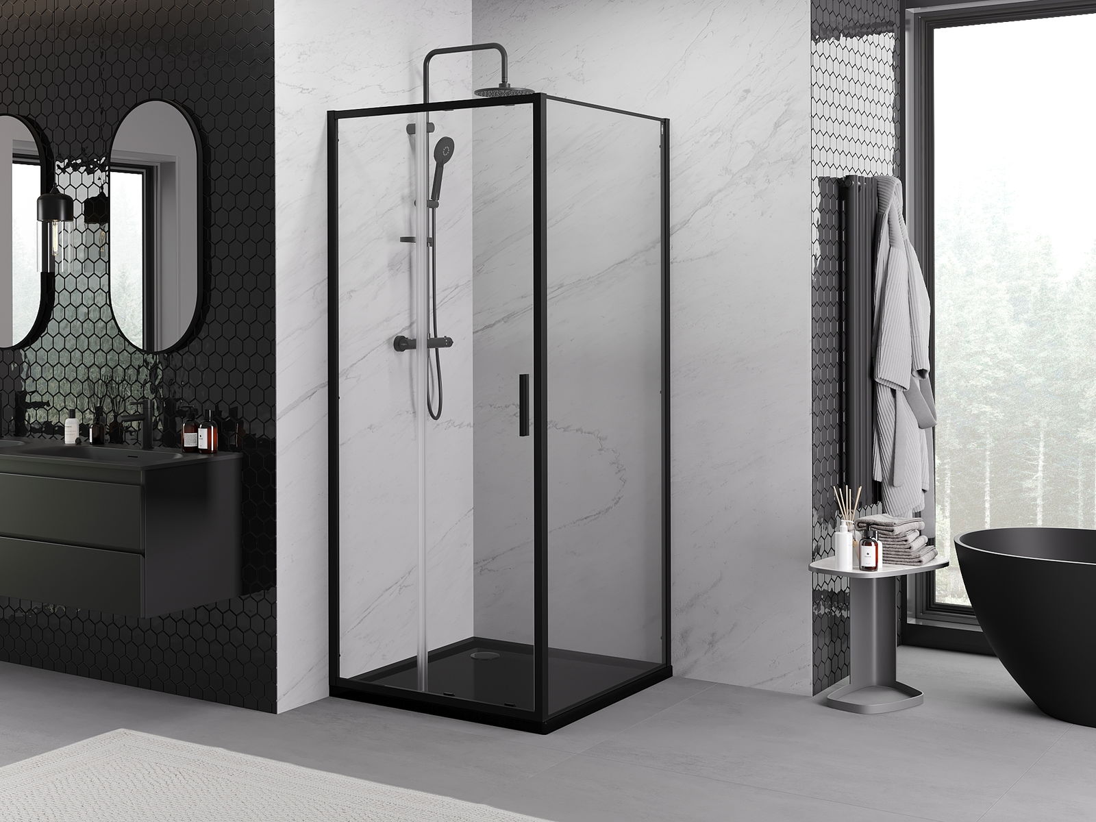 Mexen Rio τετράγωνη καμπίνα ντους 90 x 90 εκ., διάφανη, μαύρη - 860-090-090-70-00