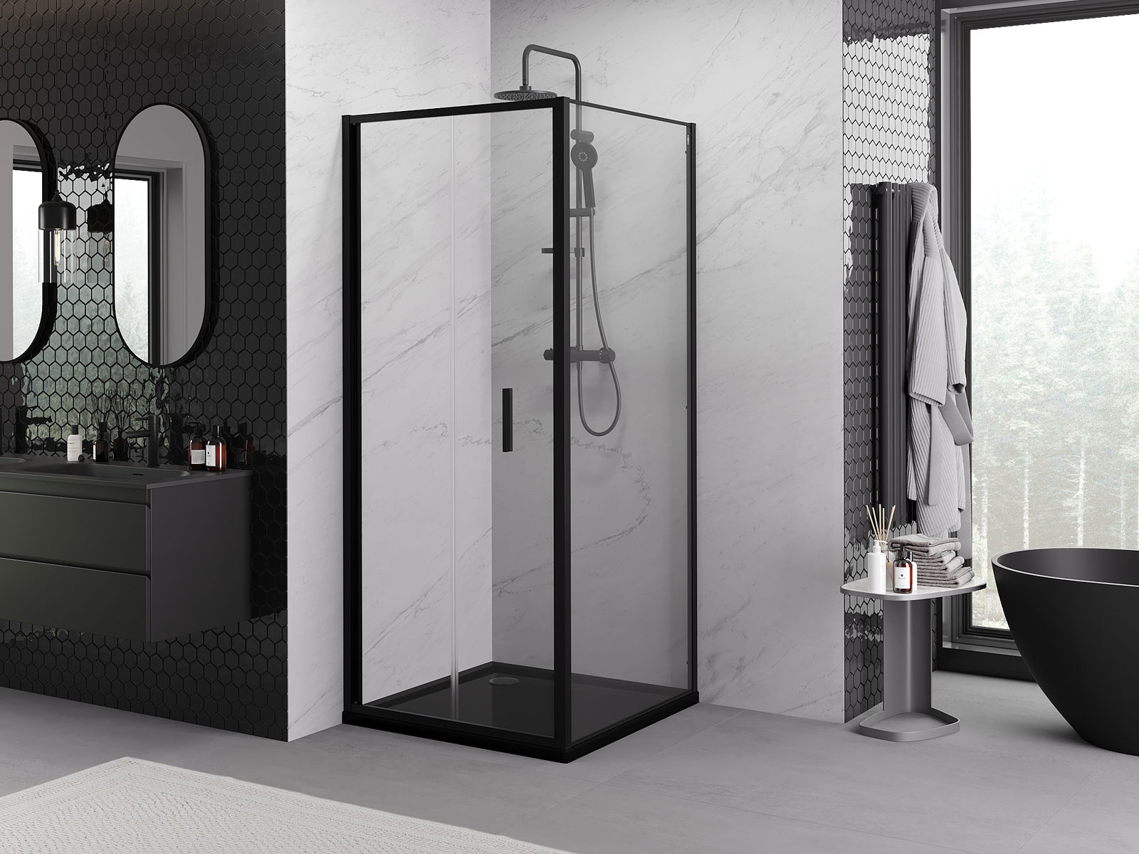 Mexen Rio τετράγωνη καμπίνα ντους 90 x 90 εκ., διάφανη, μαύρη - 860-090-090-70-00