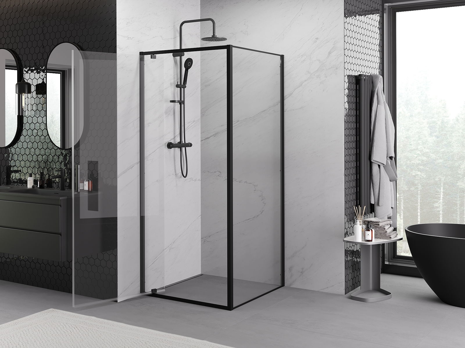 Mexen Rio τετράγωνη καμπίνα ντους 90 x 90 εκ., διάφανη, μαύρη - 860-090-090-70-00