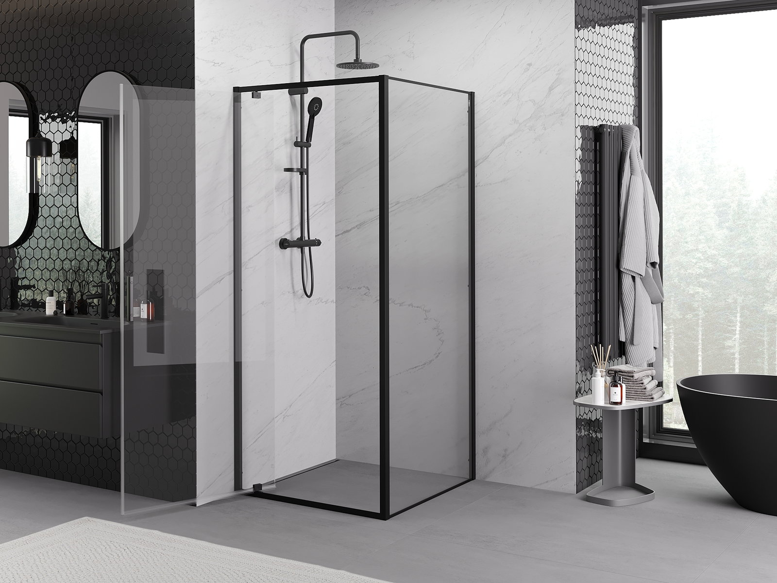 Mexen Exo καμπίνα ντουζιέρας ανοιγόμενη 80 x 80 εκ., διαφανής, μαύρη