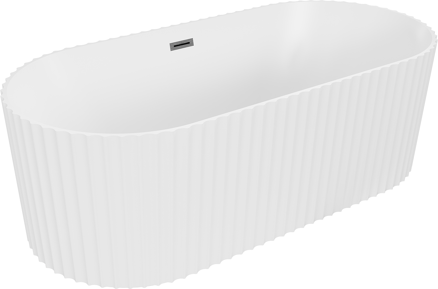 Mexen Paola ελεύθερη μπανιέρα ραβδωτή 150 x 75 cm, λευκή ματ, υπερχείλιση gun gray
