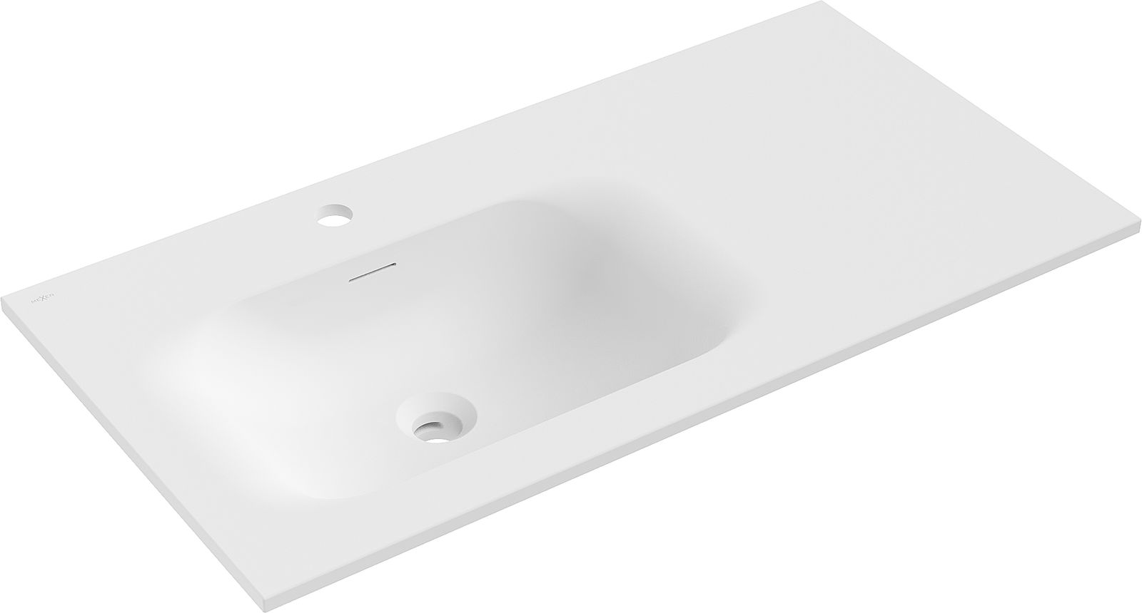 Ο νιπτήρας διαθέτει άνοιγμα στο οποίο μπορούμε να τοποθετήσουμε τη βρύση. Αυτό επιτρέπει την εξοικονόμηση πολύτιμου χώρου στο μπάνιο και υπογραμμίζει την αισθητική του. Αυτή η λύση επιτρέπει επίσης την ευκολότερη διατήρηση της καθαριότητας γύρω από τον νιπτήρα.