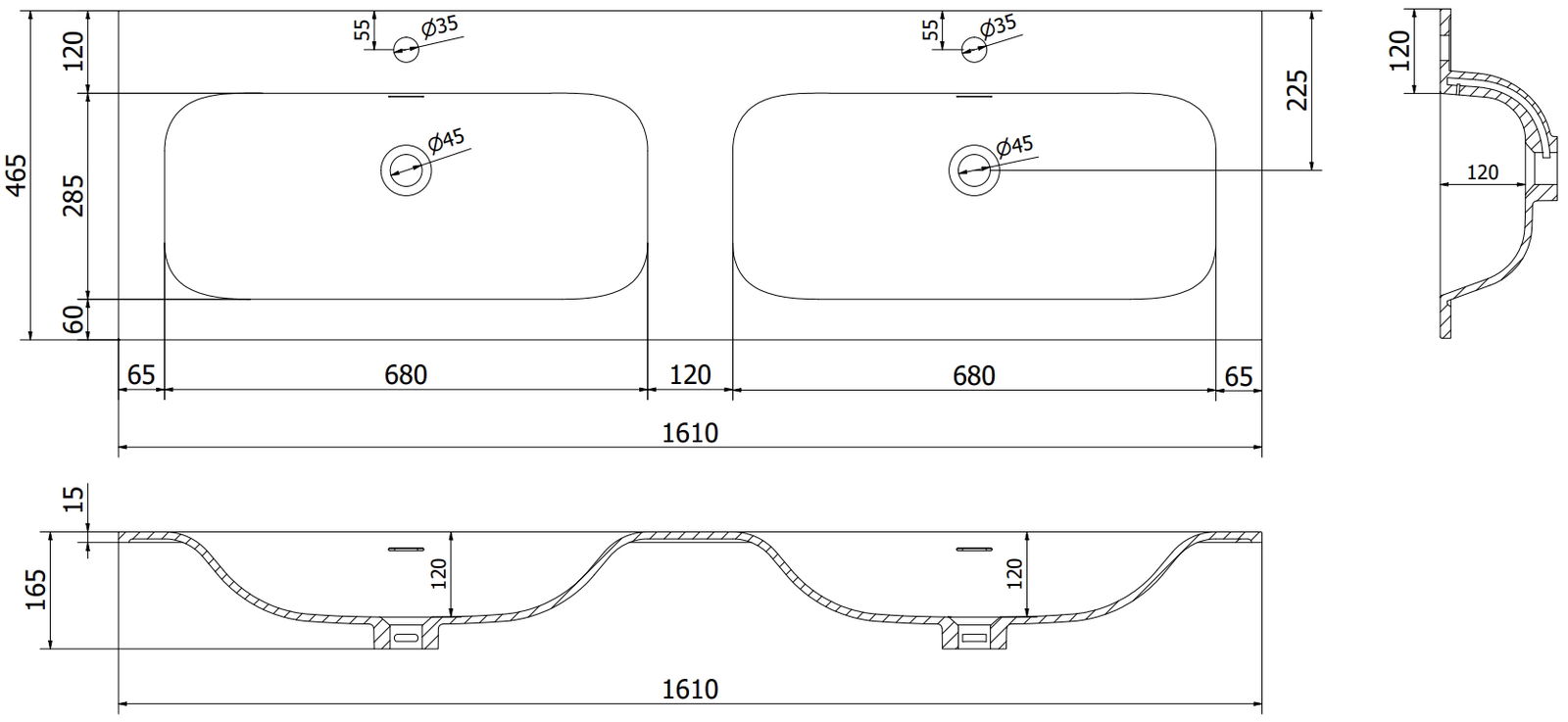 Mexen Vela διπλός εντοιχισμένος νιπτήρας πάγκου 161 x 46,5 εκ., λευκό ματ - 25231601D