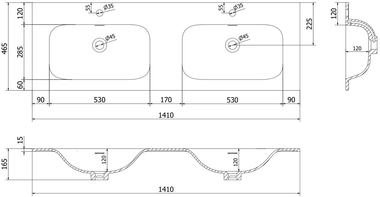 Mexen Vela εντοιχιζόμενος νεροχύτης με διπλή επιφάνεια 141 x 46,5 cm, μαύρο ματ