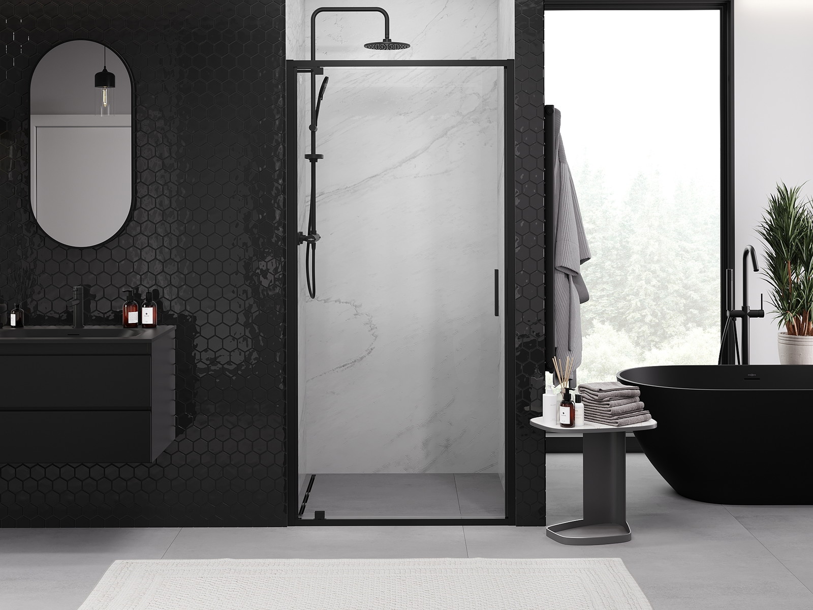 Χάρη στη χρήση ενός καθολικού συστήματος στήριξης, οι πόρτες ντους μπορούν να τοποθετηθούν είτε από τη δεξιά είτε από την αριστερή πλευρά, ανάλογα με τις ανάγκες. Έτσι μπορείτε να σχεδιάσετε με ευκολία ένα ντους προσαρμοσμένο στον χώρο του μπάνιου.