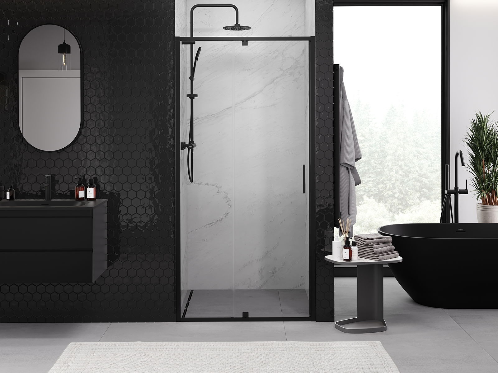 Η πρακτική και άνετη λαβή κατασκευάζεται από ανθεκτικό και αντοχής μέταλλο. Ο μοντέρνος σχεδιασμός σε συνδυασμό με το φινίρισμα που ταιριάζει με το χρώμα των προφίλ προσδίδει στο σύνολο μια σύγχρονη και κομψή εμφάνιση, τονίζοντας την αισθητική κάθε μπάνιου.
