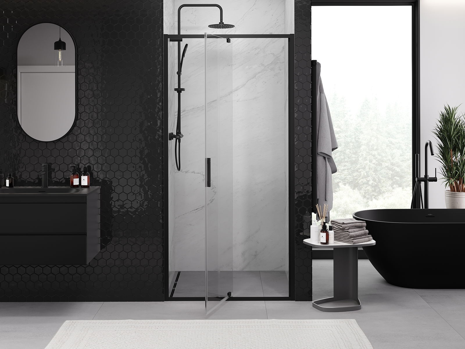 Mexen Rio τετράγωνη καμπίνα ντους 90 x 90 εκ., διάφανη, μαύρη - 860-090-090-70-00
