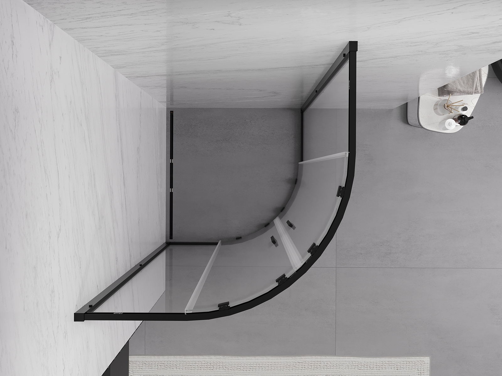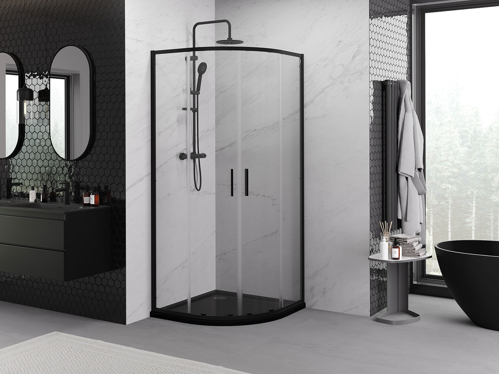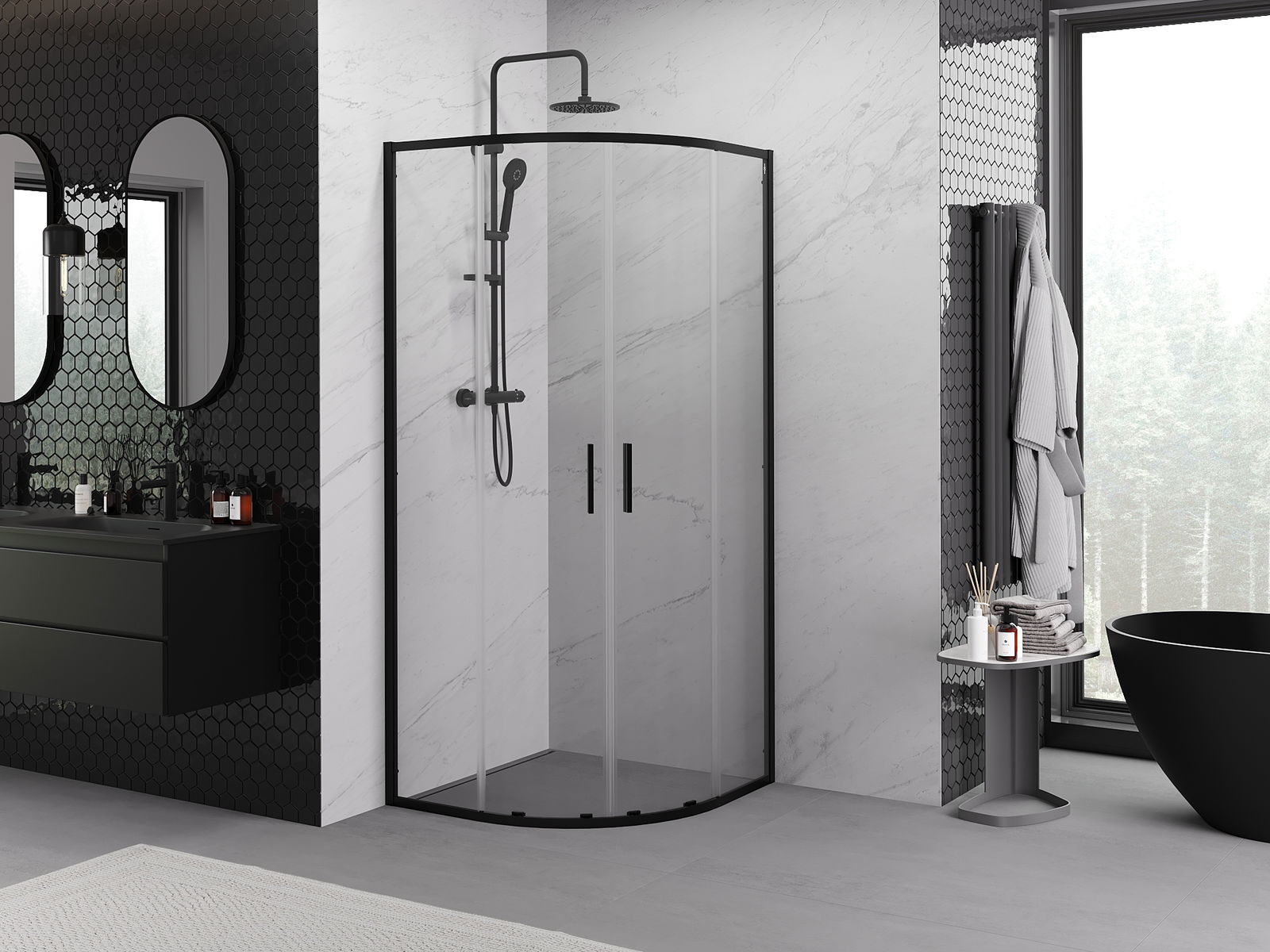 Mexen Exo ημικυκλική συρόμενη ντουζιέρα 80 x 80 εκ., διαφανές, μαύρη