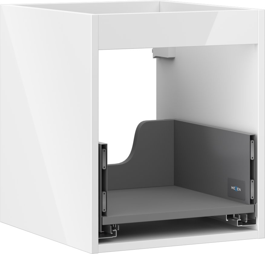 Η εγκοπή στο συρτάρι είναι σχεδιασμένη με τέτοιο τρόπο, ώστε να φιλοξενεί το σιφόνι, το οποίο είναι απαραίτητο στις εγκαταστάσεις νιπτήρων. Έτσι, το έπιπλο μπορεί να εγκατασταθεί πλήρως λειτουργικά, χωρίς την ανάγκη παραίτησης από χώρο στο συρτάρι υπέρ της εγκατάστασης.